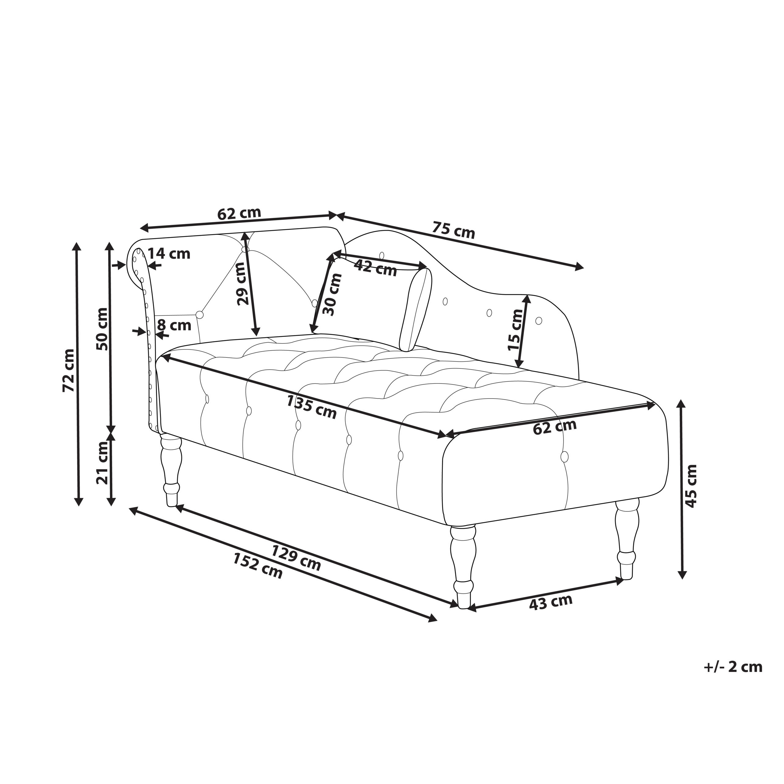 Retrotyylinen nappituftattu makuutuoli. Tämä elegantti divaani yhdistää mukavuuden ja tyylin, mikä tekee siitä upean lisän mihin tahansa olohuoneeseen. Ylellisen pehmeällä samettikankaalla verhoiltu makuutuoli sekoittaa retroa ja klassista tyyliä tuoden tilaan tyylikästä viehätystä. Sen Chesterfield-tyylinen muotoilu huokuu ajattomuutta verhoilunaulojen ja nappituftauksen ansiosta. Puiset jalat takaavat poikkeuksellisen vakauden, ja helppohoitoinen verhoilu varmistaa pitkäikäisen kauneuden. Lisäksi mukana tuleva koristetyyny tarjoaa lisämukavuutta, mikä tekee divaanilla rentoutumisesta entistä miellyttävämpää.
