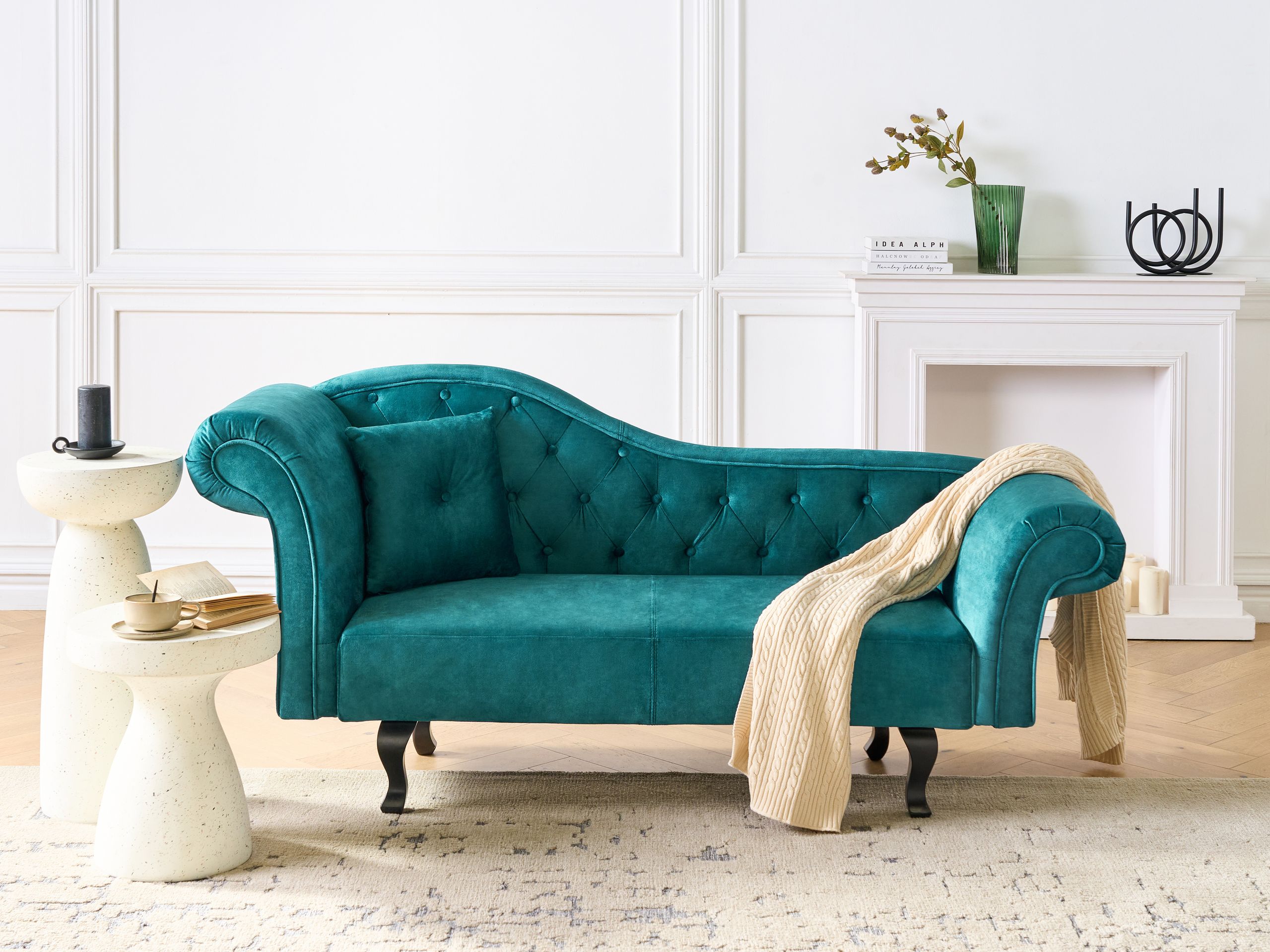 Klassinen mukava samettidivaani. Tämä klassinen divaani on täydellinen lisä mihin tahansa moderniin tai perinteiseen sisustukseen. Korkealaatuinen ja tiivis samettikangasverhoilu on koristeltu kohokuvioidulla pilkkukuvioinnilla, minkä ansiosta se kestää lemmikkien kynsiä, estää karvoja painumasta syvälle ja on helppo puhdistaa, tehden divaanista erinomaisen kissa- ja koirakoteihin. Pyöristetyt käsinojat ja kauniisti kaartuva selkänoja korostavat divaanin ajatonta tyyliä ja tarjoavat mukavuutta. Selkänojan ja koristetyynyn nappituftaus sekä massiivipuujalat viimeistelevät kokonaisuuden, antaen sille elegantin ilmeen.