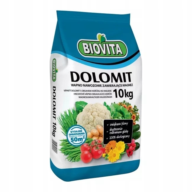 Dolomit-kalsium-magnesiumlannoiteon tuote, jossa on korkea kalsium- ja magnesiumkarbonaattipitoisuus. Voit käyttää sitä happaman maaperän happamuuden vähentämiseen ja lannoittamiseen. Tämä tuote täydentää maaperän puuttuvilla elementeillä. Sitä suositellaan kaikille maaperätyypeille. Se on monikäyttöinen ja täysin universaali tuote.