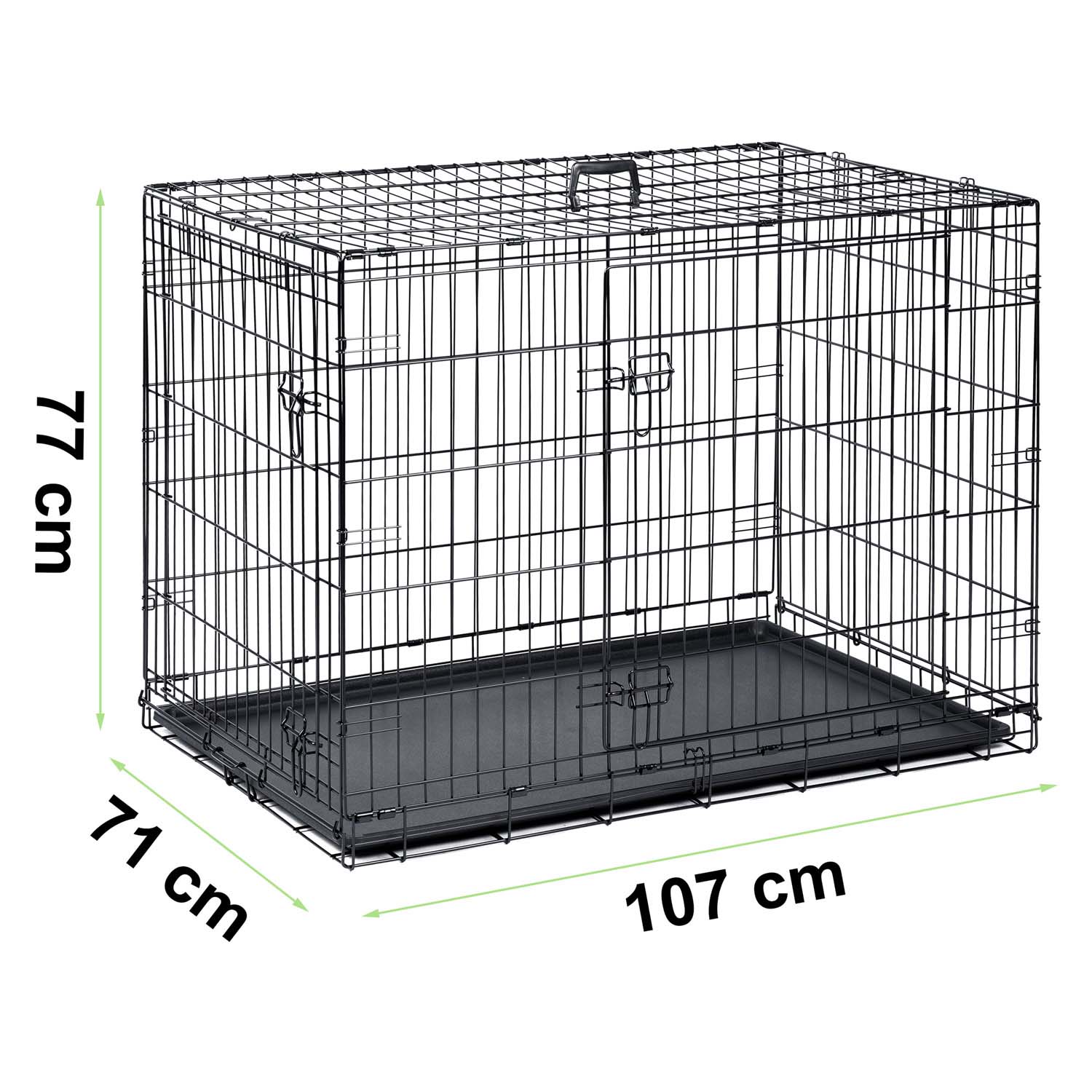 Mahdollisuus taittaa häkki helposti käytännölliseksi ja kevyeksi matkalaukuksi. Kahva helpottaa kuljetusta ja säilytystä.