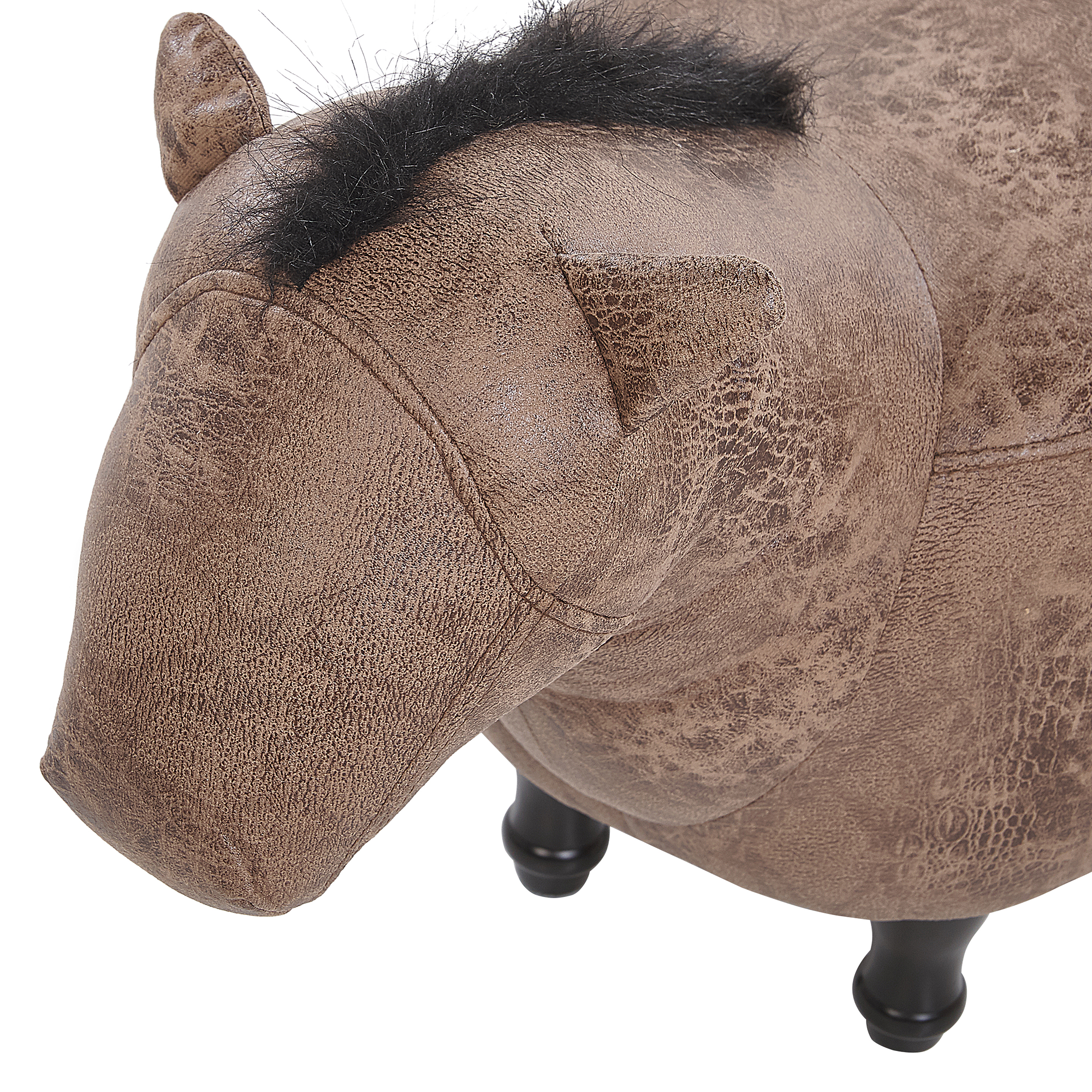 Suloinen eläinrahi. Hyppää kyytiin ja ratsasta kohti uusia seikkailuja tällä suloisella hevosen muotoisella eläinjakkaralla, joka on valmis viemään lapsesi minne mielikuvitus vie. Jakkara on verhoiltu helposti puhdistettavalla keinonahalla, ja mustat jalat ovat massiivikumipuuta. Muhkea ja pehmeä täyte tekee siitä mukavan istua ja halailla, kun taas pörröinen harja tuo tekstuuria. Hevonen tuo sisustukseen paljon iloa ja hauskuutta, olipa se sitten leikkihuoneessa tai lapsen makuuhuoneessa.
