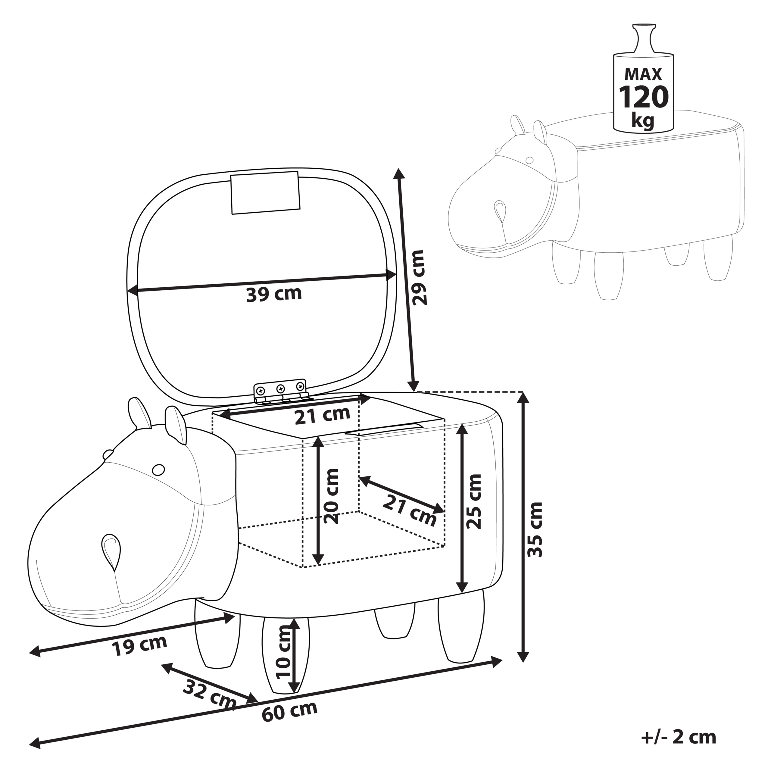 Lystikäs virtahevon muotoinen jakkara. Tämä virtahevon muotoinen vekkuli rahi on täydellinen lisä lastenhuoneiseen. Rahin voi ottaa mukaan leikkeihin ja siinä on myös kätevä säilytystila, jonne voi piilottaa esimerkiksi leluja tai muita pieniä tavaroita. Rahi on verhoiltu kestävällä materiaalilla, joka muistuttaa aitoa nahkaa. Hieman kulutetun näköinen pinta luo rahille vintage-henkistä ilmettä. Kokonaisuuden kruunaavat tukevat kumipuiset jalat.
