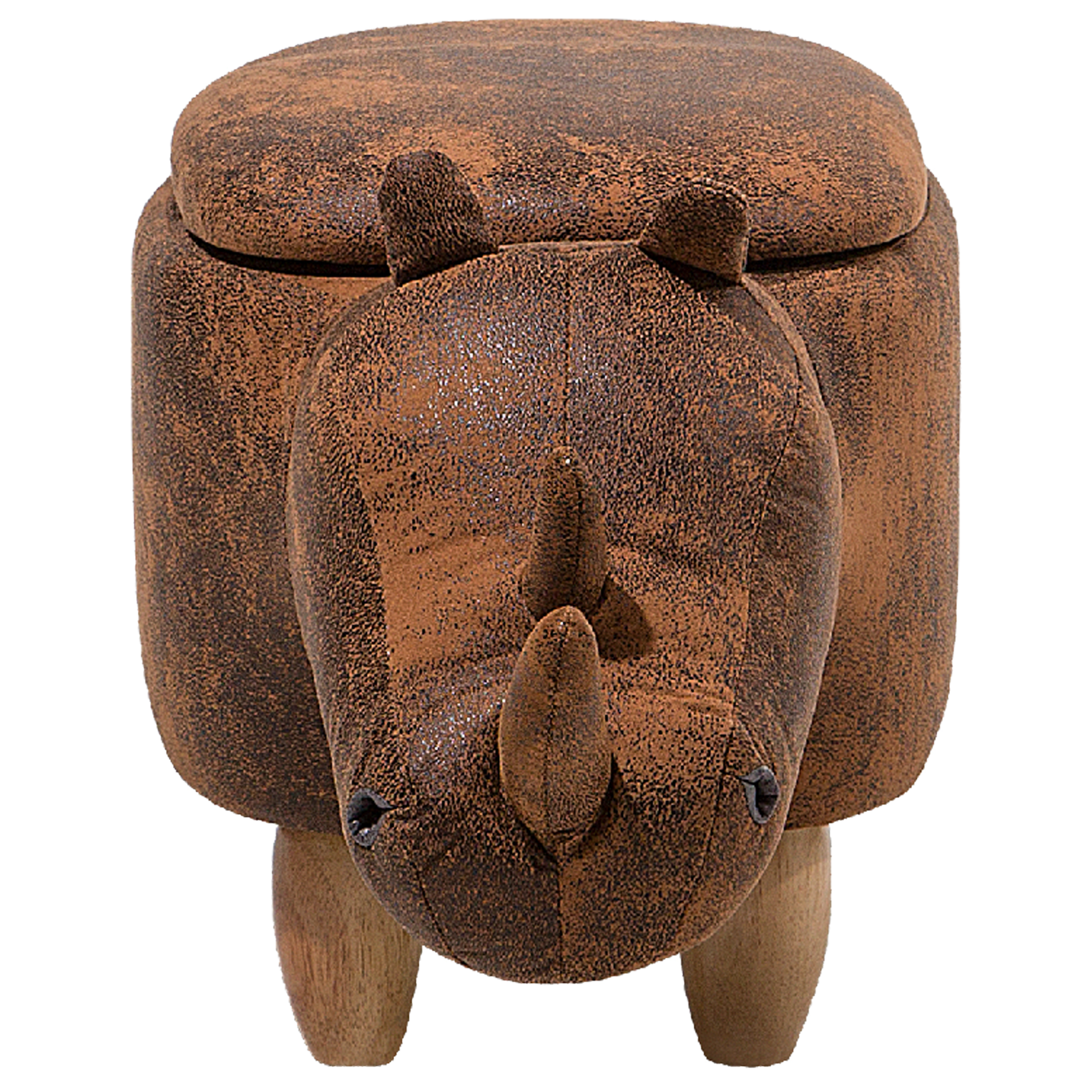 Ihastuttava sarvikuonon muotoinen jakkara. Tämä sarvikuonon muotoinen vekkuli rahi on täydellinen lisä lastenhuoneiseen. Rahin voi ottaa mukaan leikkeihin ja siinä on myös kätevä säilytystila, jonne voi piilottaa esimerkiksi leluja tai muita pieniä tavaroita. Rahi on valmistettu kestävästä materiaalista, joka muistuttaa aitoa nahkaa. Hieman kulutetun näköinen pinta luo rahille vintage-henkistä ilmettä. Kokonaisuuden kruunaavat tukevat kumipuiset jalat.