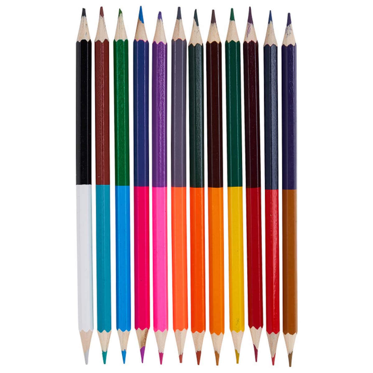 Tutustu laajaan värivalikoimaan ja hyödynnä säilytystilaa mahdollisimman hyvin tällä 12 kaksipuolisen värikynän setillä, jossa on yhteensä 24 eri sävyä. Jokainen kynä on 17,6 cm:n pituinen, ja siinä on kaksi eriväristä kärkeä, mikä säästää tilaa ja lisää luovia mahdollisuuksia. Se on pakattu koristeelliseen laatikkoon ja sopii vähintään 3-vuotiaille lapsille. CE-standardien mukainen.
