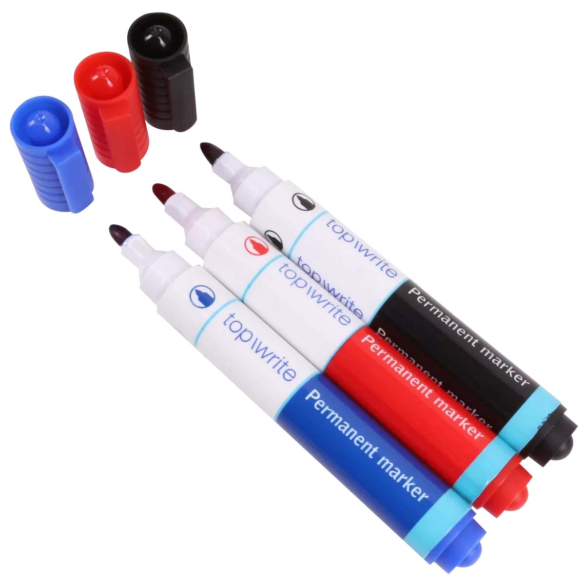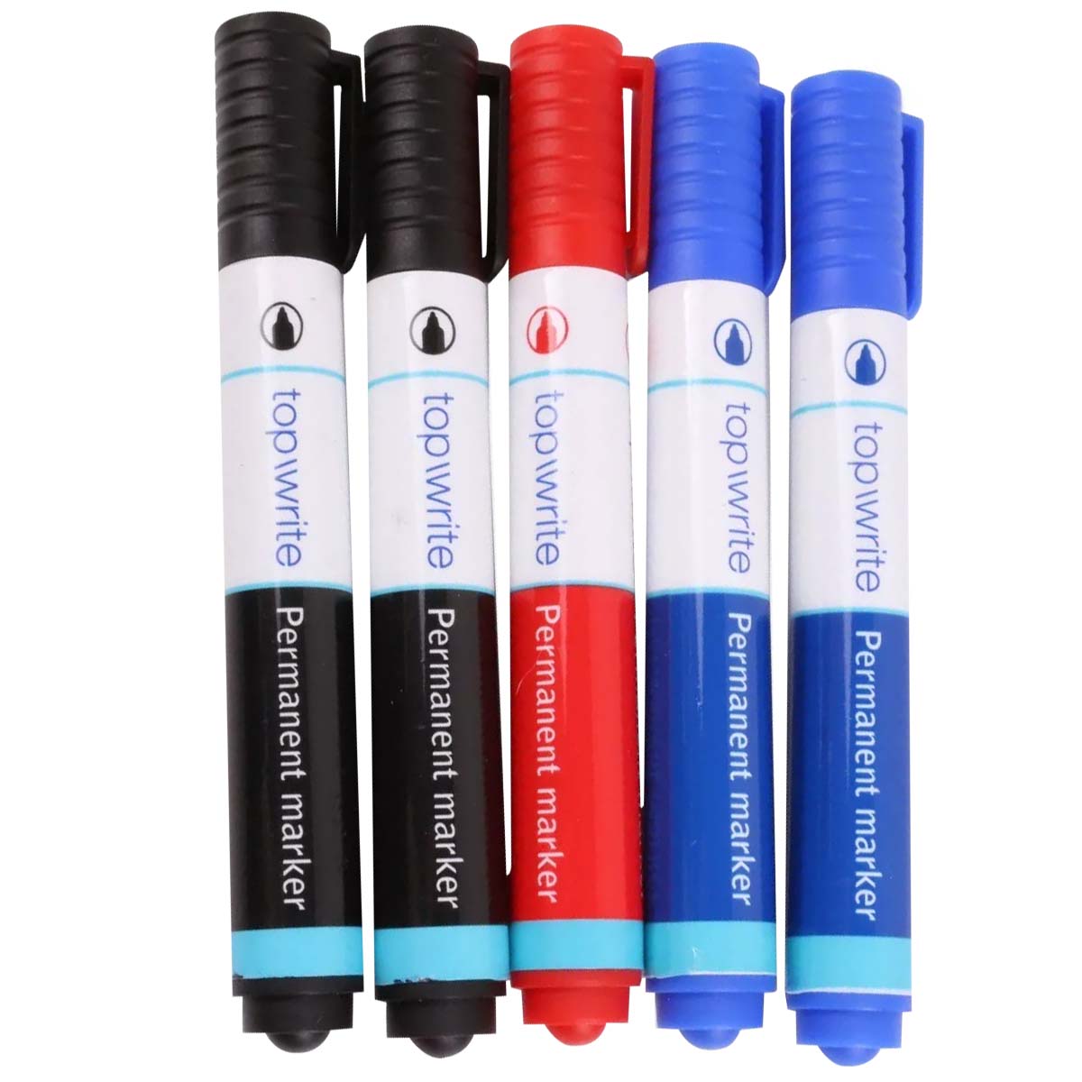 Tee jälkesi tällä Topwrite-yrityksen 5 pysyvän tussin paketilla, jossa on mustaa, sinistä ja punaista mustetta. Niiden nopeasti kuivuva muste on vedenkestävää, myrkytöntä ja kestävää monilla pinnoilla. Jokaisen tussin mukana tulee klipsikorkki helppoa säilytystä varten. Käytännölliset jokapäiväiseen käyttöön, ne sopivat erinomaisesti toimistoon, esineiden merkitsemiseen tai askarteluun kotona.