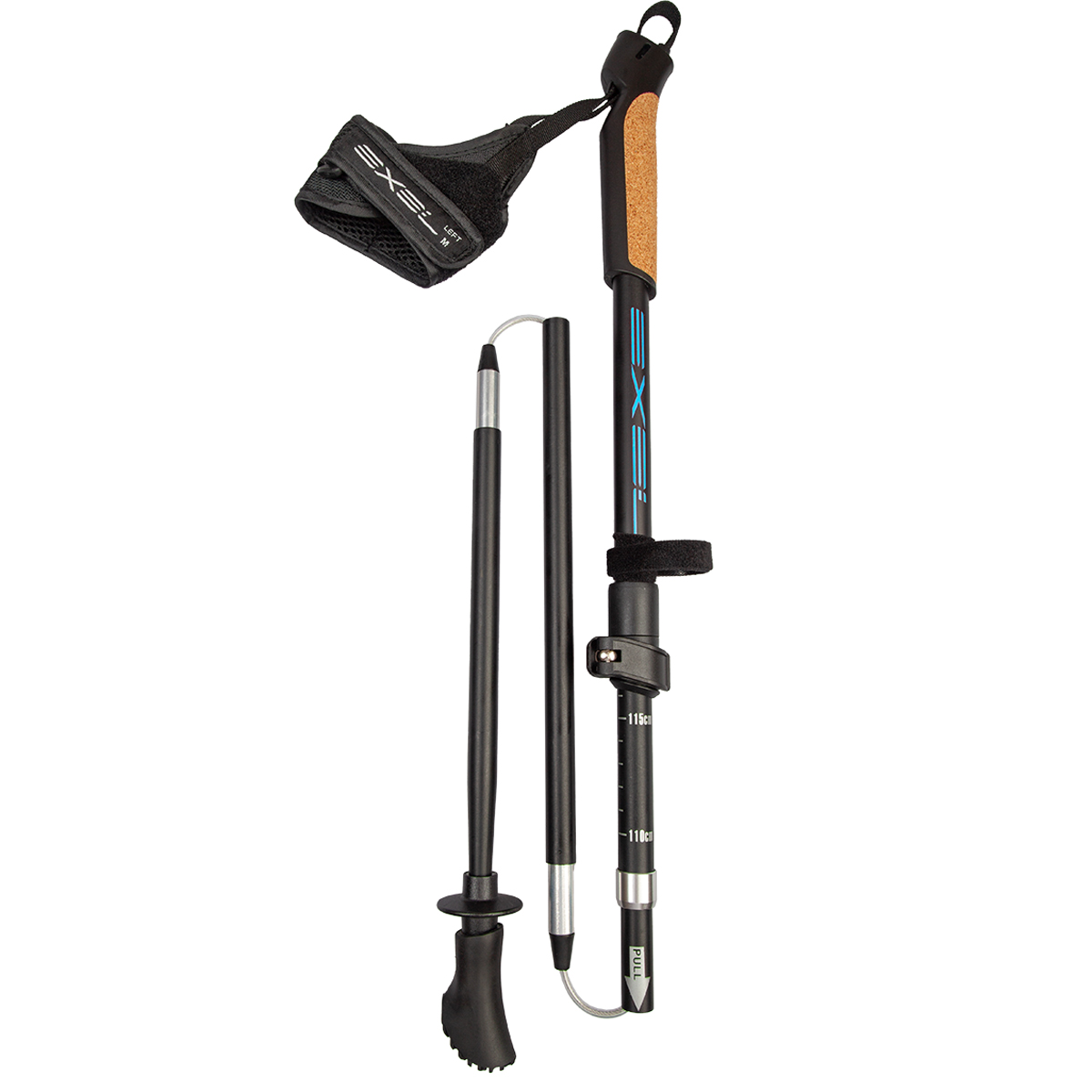 EXEL Nordic Walker Foldable -sauvat on valmistettu kestävästä 6061-alumiinista. Painonappimekanismin ansiosta sauvat on nopea ja helppo koota tai taittaa kuljetusta varten. Taitettuna pituus on vain 38 cm, joten ne kulkevat helposti repussa. Mukana kätevä kuljetuspussi.