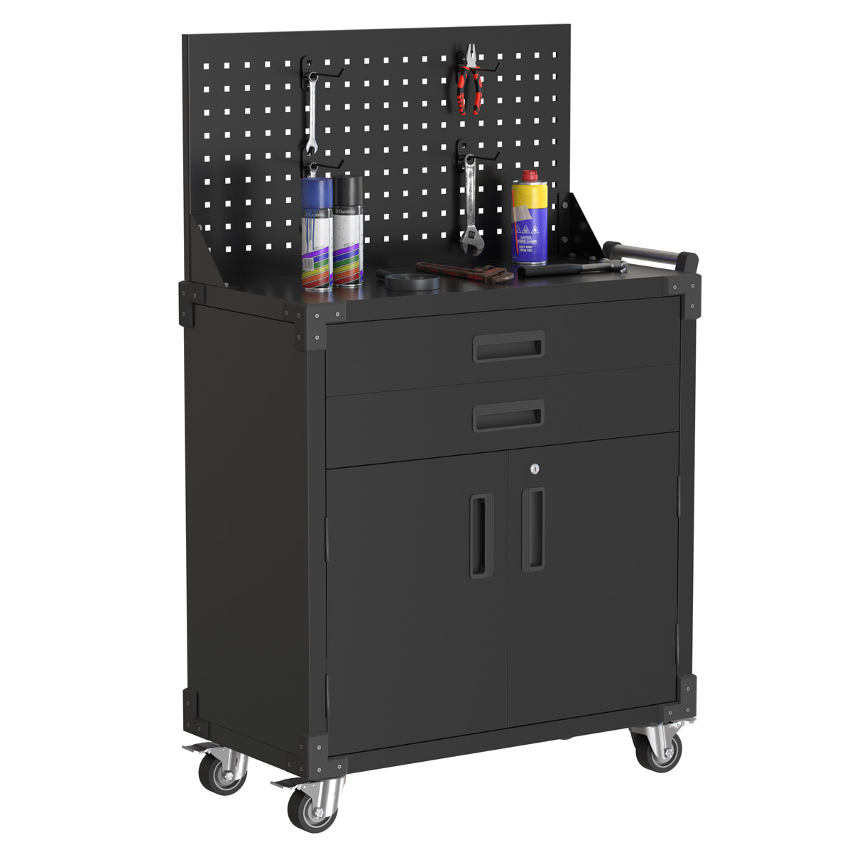 Keskuslukitus: Työkaluvaunu on varustettu keskuslukituksella, joka toimitetaan kahdella avaimella.