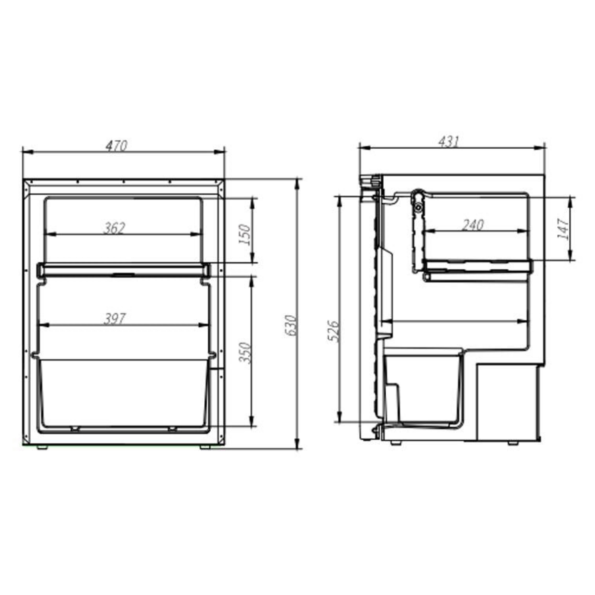 Kompressorikäyttöinen 12/24 V 65 litran jääkaappipakastin LG:n kompressorilla sopii hyvin käytettäväksi sekä kotona että matkoilla. Kestää hyvin tärinää ja kallistuksia, joten toimii hyvin kovemmassakin menossa. Erittäin tehokas, jäähdyttää jopa -20 °C:een vain hyvin pienellä virrankulutuksella ulkolämpötilasta riippumatta.
