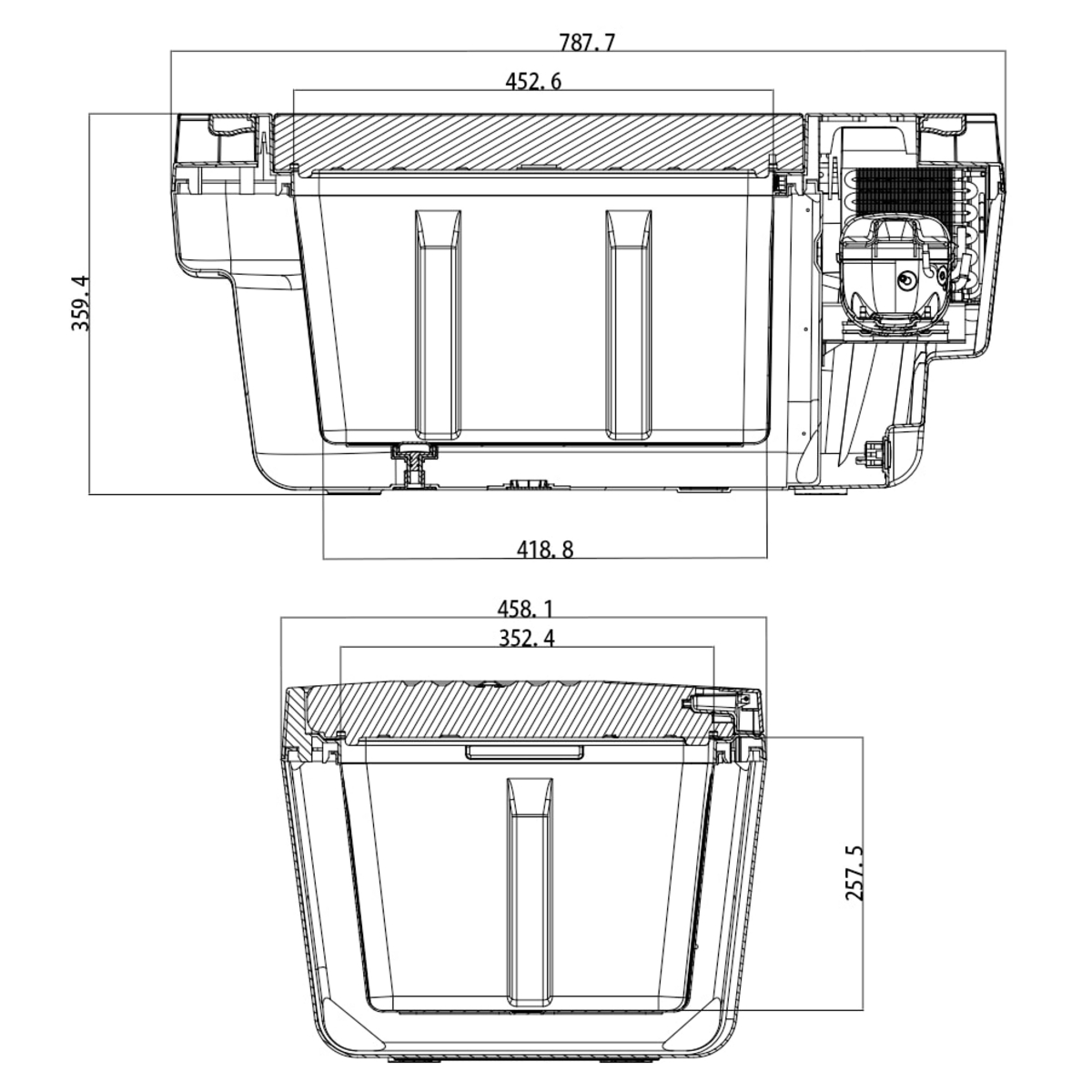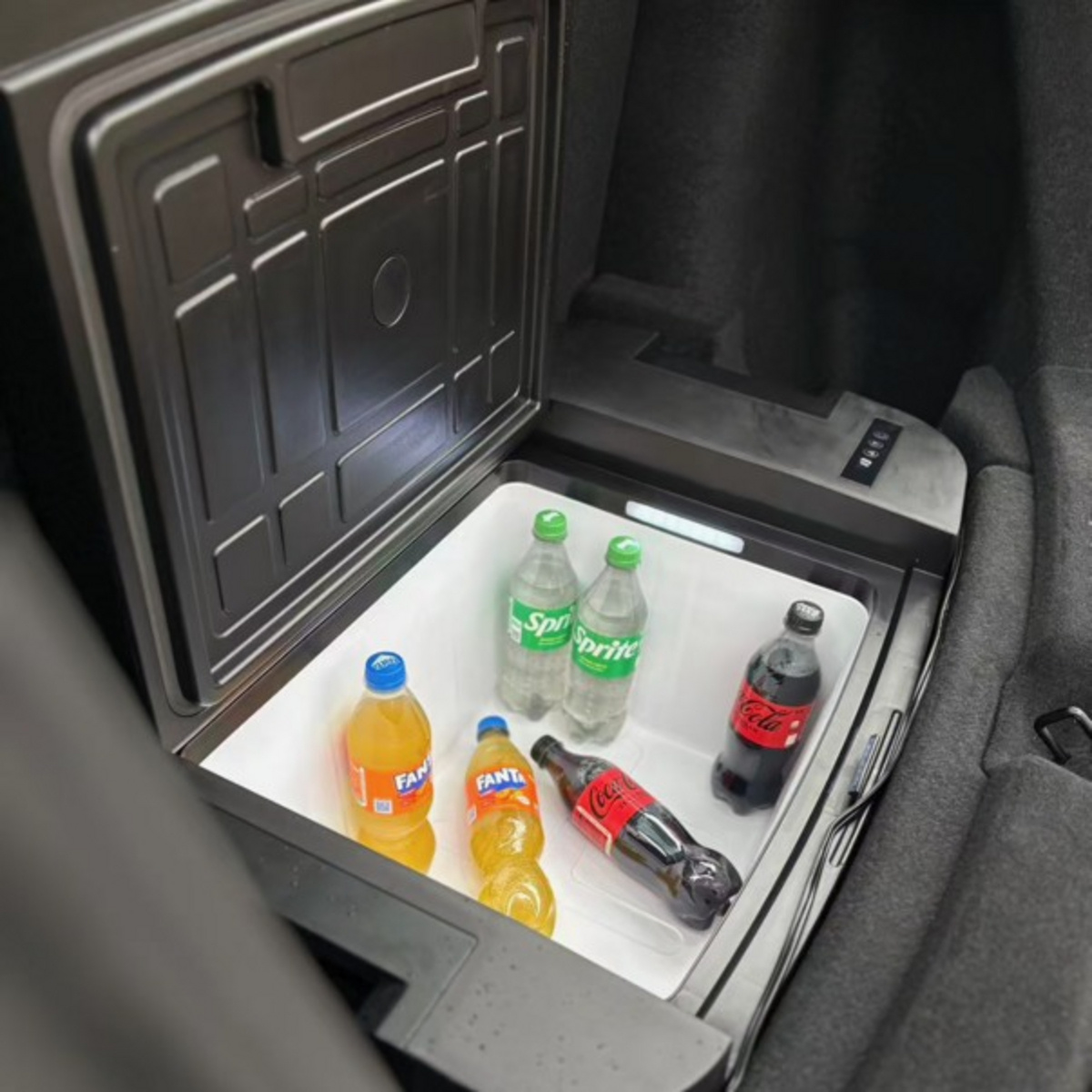 Kompressorikäyttöinen 12/24/23 0V 35 litran jääkaappipakastin Teslan Y-mallin Sub Trunkiin. Erittäin tehokas, jäähdyttää jopa -20 °C:een vain hyvin pienellä virrankulutuksella ulkolämpötilasta riippumatta. Etäohjattavissa helppokäyttöisen mobiilisovelluksen kautta.