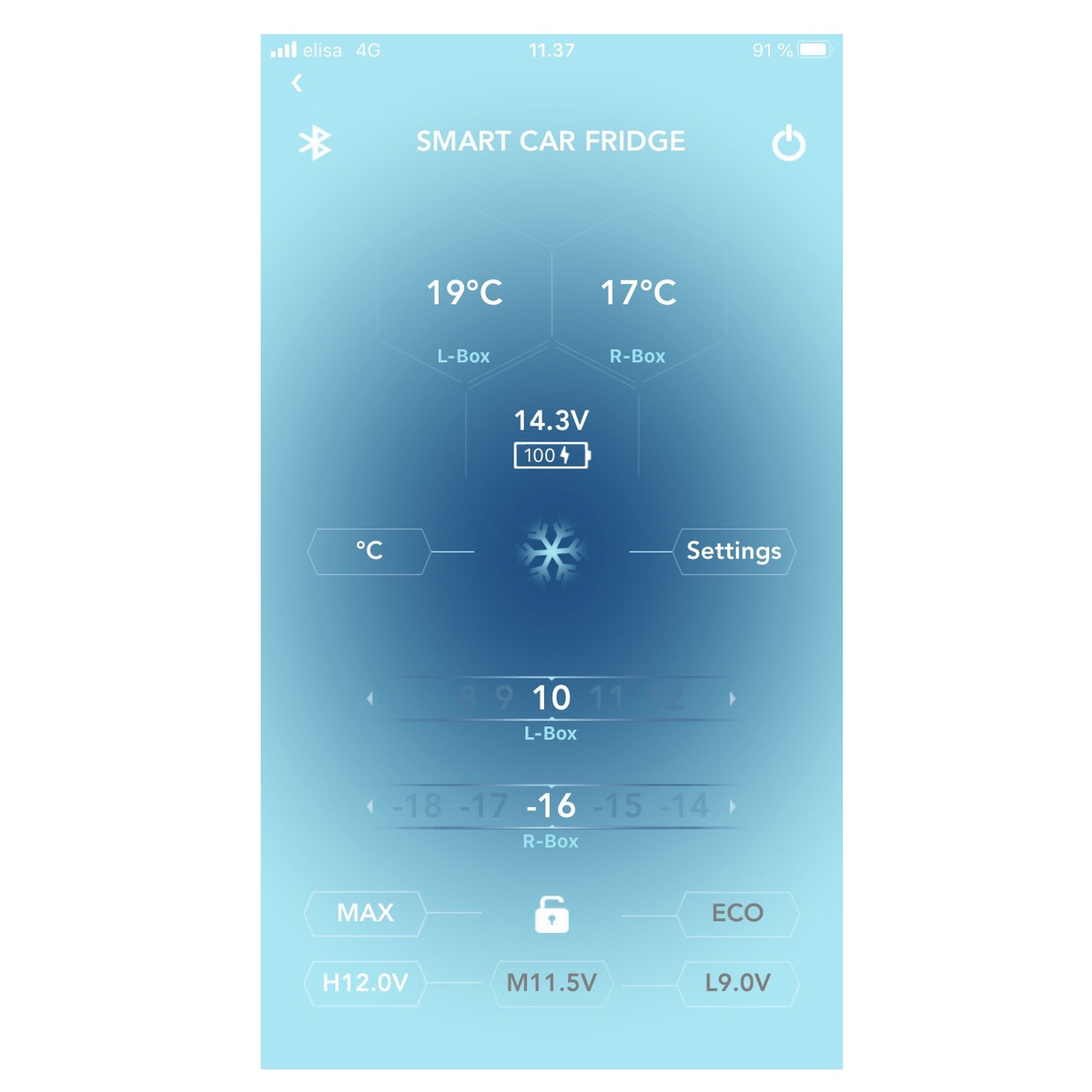 - Laite varustettu Bluetooth ominaisuudella. Vapaasti ladattava helppokäyttöinen mobiilisovellus, joka mahdollistaa jääkaapin lämpötilojen seurannan ja etäkäytön älypuhelimella.