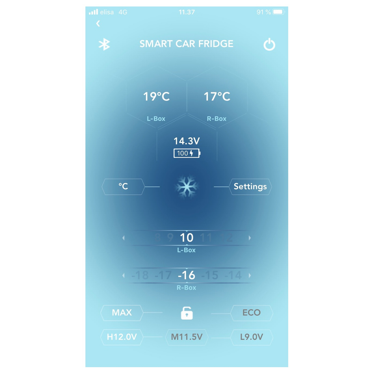 - Laite varustettu Bluetooth ominaisuudella. Vapaasti ladattava helppokäyttöinen mobiilisovellus, joka mahdollistaa jääkaapin lämpötilojen seurannan ja etäkäytön älypuhelimella.