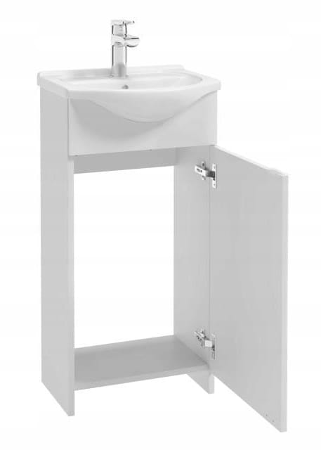 Valkoinen 45 cm vapaasti seisova kylpyhuonekaappi pesualtaalla