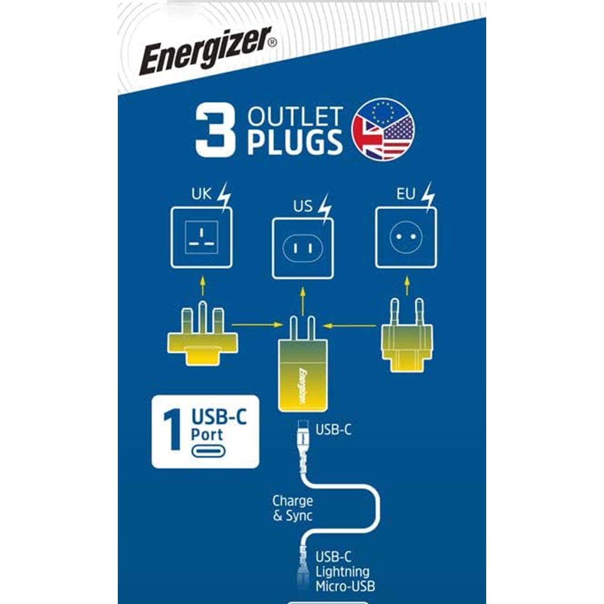 GaN-verkkovirtalaturi 4A USB-C 20W monipistorasia EU / UK / US