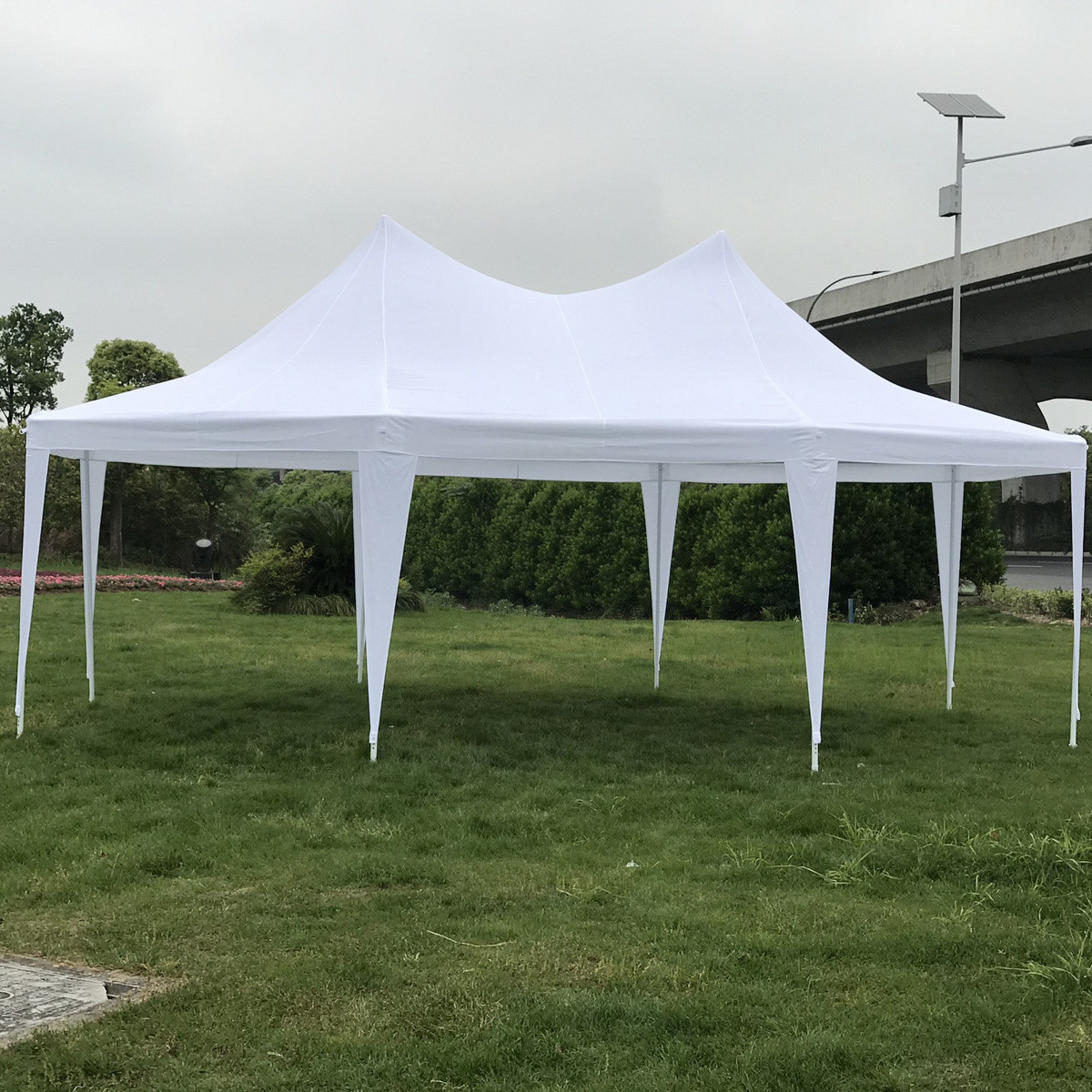 Teltan katto on valmistettu vahvasta 260 g/m² PVC-pinnoitetusta polyesterikankaasta, joka tarjoaa erinomaiset vedenkesto-ominaisuudet, ja kankaan UV-suojaus takaa sille pitkän käyttöiän. Laadukkaan kankaan ansiosta juhlat pysyvät häiriöttöminä niin äkillisten sateiden kuin paahtavan auringonpaisteenkin aikana. Voitte tanssia, nauttia aterioista ja luoda muistoja huolehtimatta säästä.