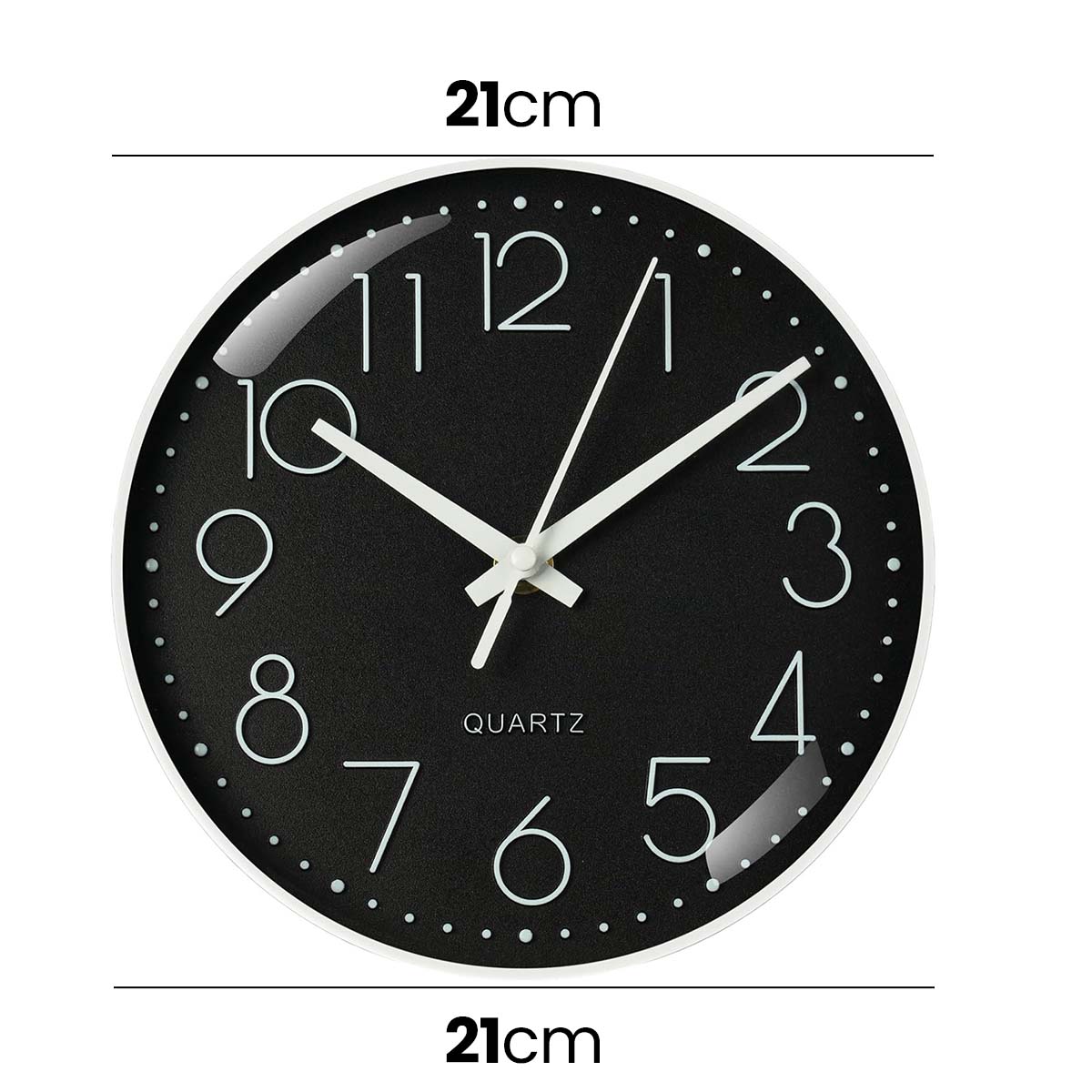 21 cm:n seinäkellossa yhdistyvät moderni tyyli ja tyylikäs muotoilu. Sen musta kellotaulu, hopeiset numerot ja metallinen kehys tuovat tyylikkään lisän mihin tahansa sisustukseen. Hiljainen toiminta, ihanteellinen olohuoneeseen, toimistoon tai makuuhuoneeseen. Nopea ja helppo lukea aika sekunäytön ansiosta.