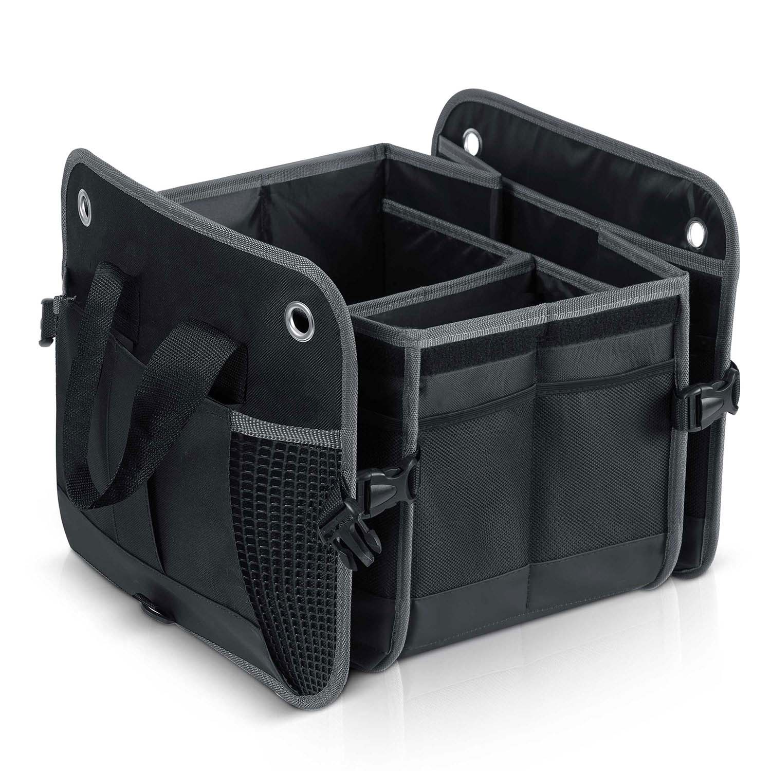 Modulaarinen, kokoontaitettava ja käytännöllinen järjestäjä. Kolmen tilavan lokeron ja kolmen lisäjakajan ansiosta voit mukauttaa sisätilan täydellisesti tavaroillesi. Kun sitä ei käytetä, se taittuu litteäksi eikä vie tilaa.