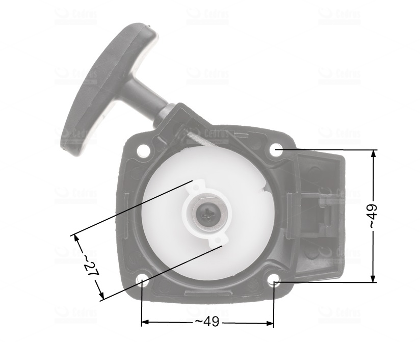Kiinnitysreikien väli noin 54,8 mm vinottain (reunasta reunaan), lineaarinen ympyrä noin 53,7 mm. Kiinnitysreikien halkaisija noin 5,5 mm. Käynnistimen pituus 86 mm ja leveys 67,6 mm.