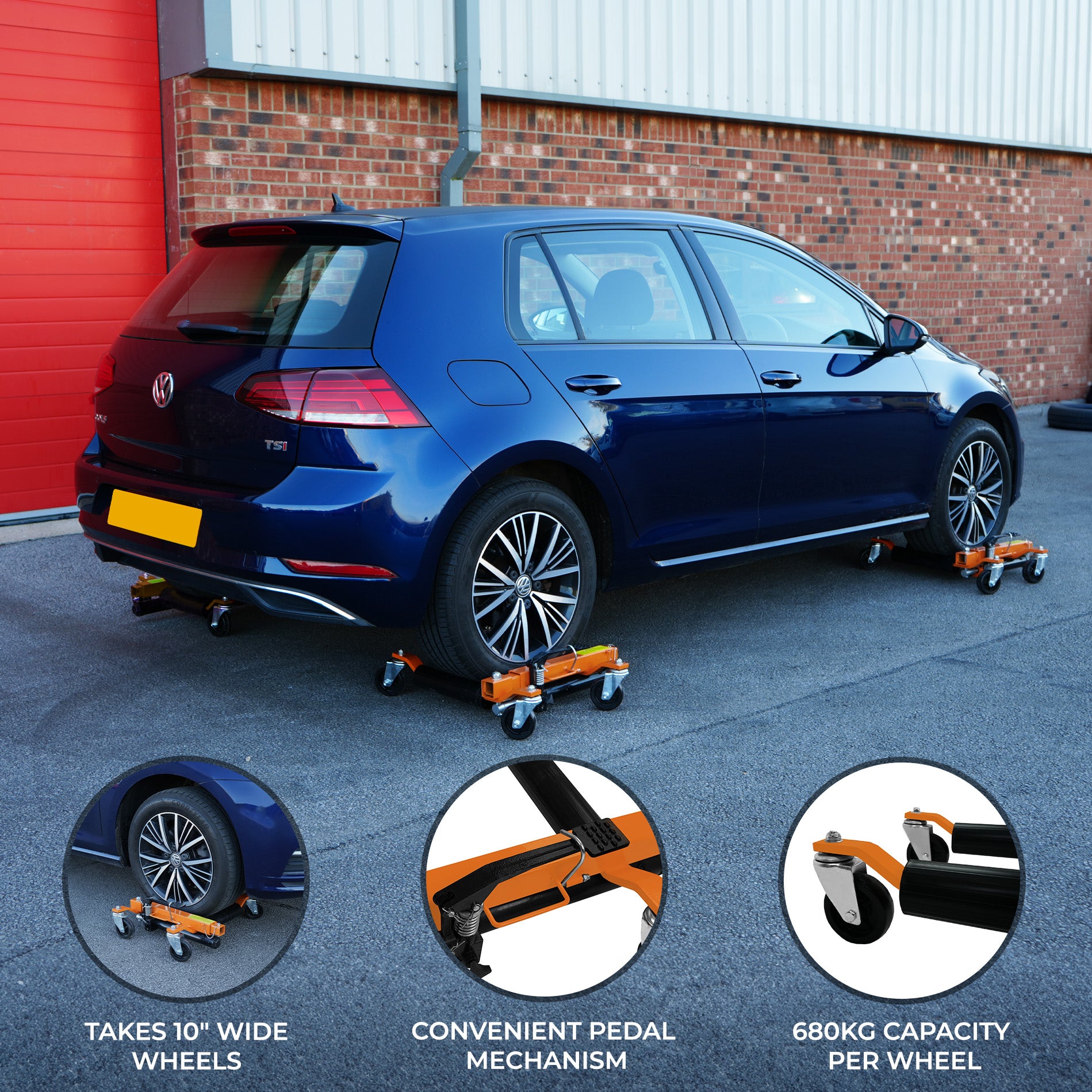 Jokaisessa luistimessa on neljä 3 ¾" pyörää, jotka mahdollistavat tasaisen, kaikkiin suuntiin liikkumisen ja tukevat jopa 25 cm leveitä ajoneuvoja. Suljettuna luistimien leveys on 37,5 cm, mutta avattuna rullien välinen leveys laajenee vaikuttavaan 58,2 cm:iin, jolloin kokonaisleveys on 82 cm, joten se sopii laajaan valikoimaan ajoneuvoja. Lisäksi kestävä, Suuret rullat varmistavat vakaan kosketuksen kuormaan, mikä parantaa käyttömukavuutta ja tarjoaa tasaisen ja luotettavan liikkeen.