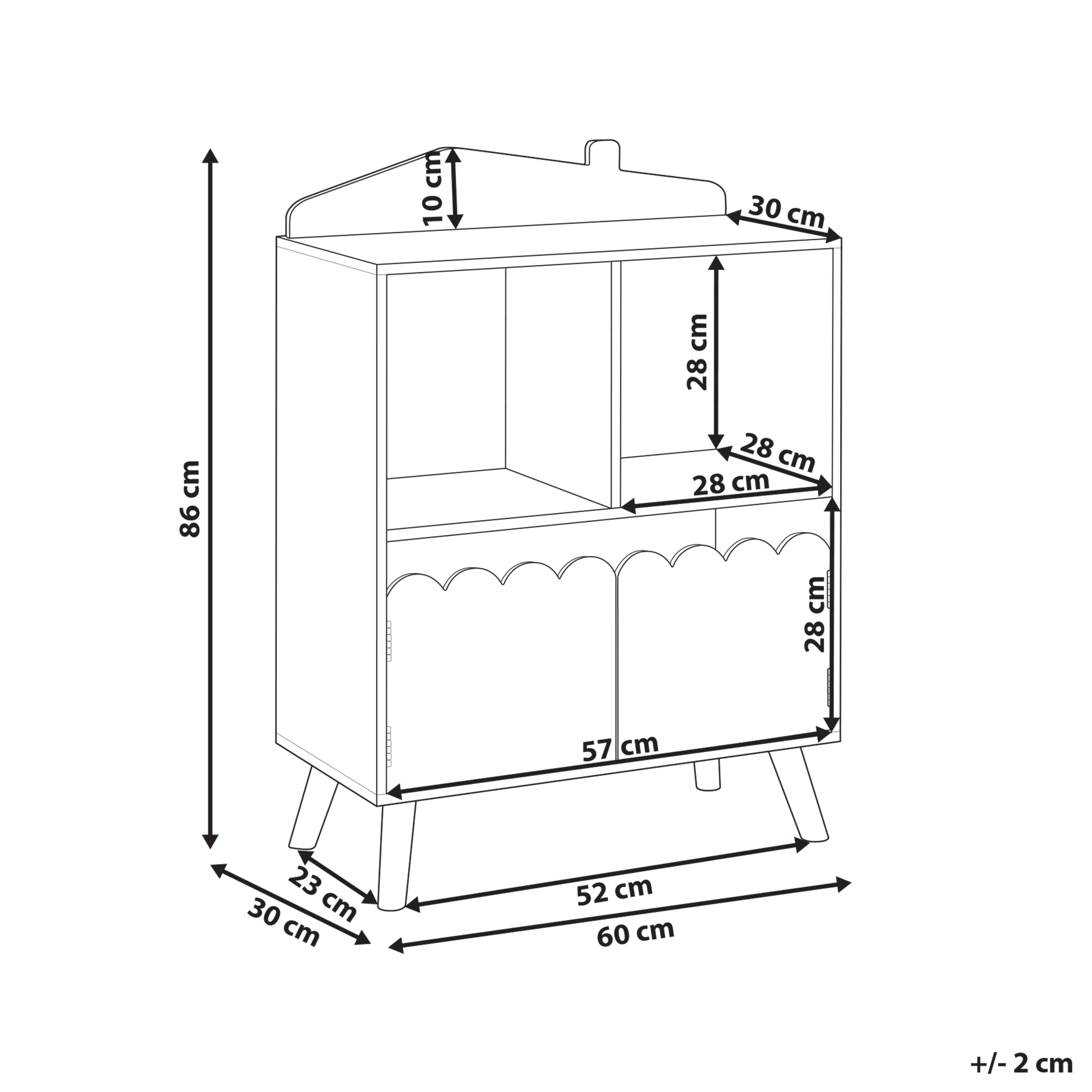 Viehättävä talonmuotoinen lasten hyllykkö. Tämä hurmaava talonmuotoinen kirjahylly lisää leikkisää mutta tyylikästä ilmettä jokaiseen lastenhuoneeseen. Kestävä MDF-runko ja vankat mäntyjalat takaavat tukevuuden ja pitkäikäisyyden. Hyllyssä on kaksi sievästi aaltoilevaa ovea, joiden taakse kätkeytyvä hyllytila tarjoaa runsaasti säilytystilaa leluille, kun taas yläosan hyllyt sopivat kirjojen, koristeiden ja suosikkipehmolelujen esittelyyn. Sen monipuolinen muotoilu täydentää mitä tahansa sisustustyyliä, tuoden tilaan hauskan ja näyttävän säilytysratkaisun.