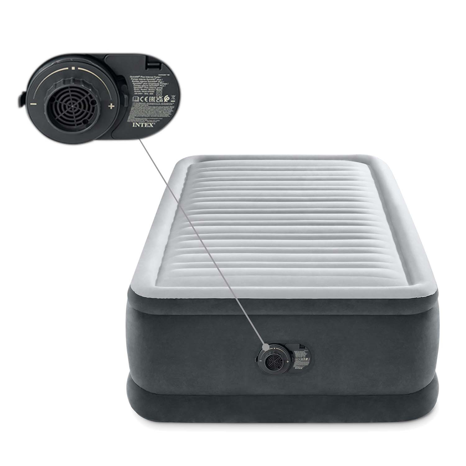 Patjaan integroitu pumppu tekee patjasta hetkessä valmiin nukkumiseen. Jokainen integroidulla sähköpumpulla varustettu patja voidaan täyttää myös perinteisellä pumpulla.