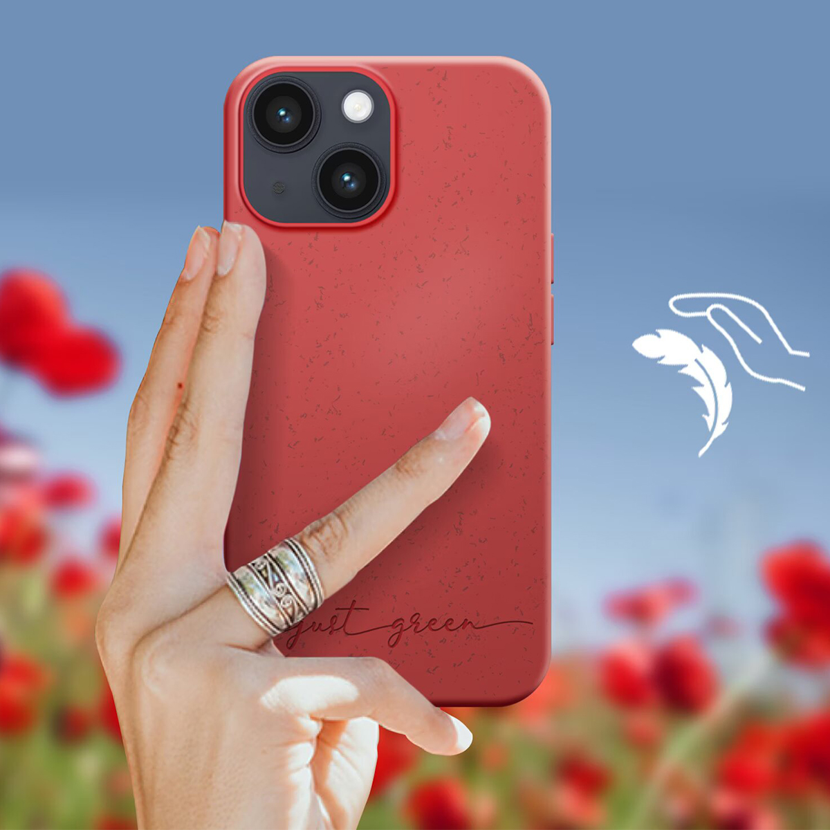 Yhdistä suojaus ja ekologisuus tässä punaisessa kotelossa iPhone 14 -mallin Natura -mallissa Just Greeniltä. Se on valmistettu biomuovista ja luonnollisista bambukuiduista, joten se rajoittaa ympäristövaikutuksia ja kestää erinomaisesti iskuja, naarmuja ja pölyä. Sen ohut muotoilu myötäilee älypuhelimen linjoja painamatta sitä, ja se on yhteensopiva langattoman latauksen ja näytönsuojien kanssa.