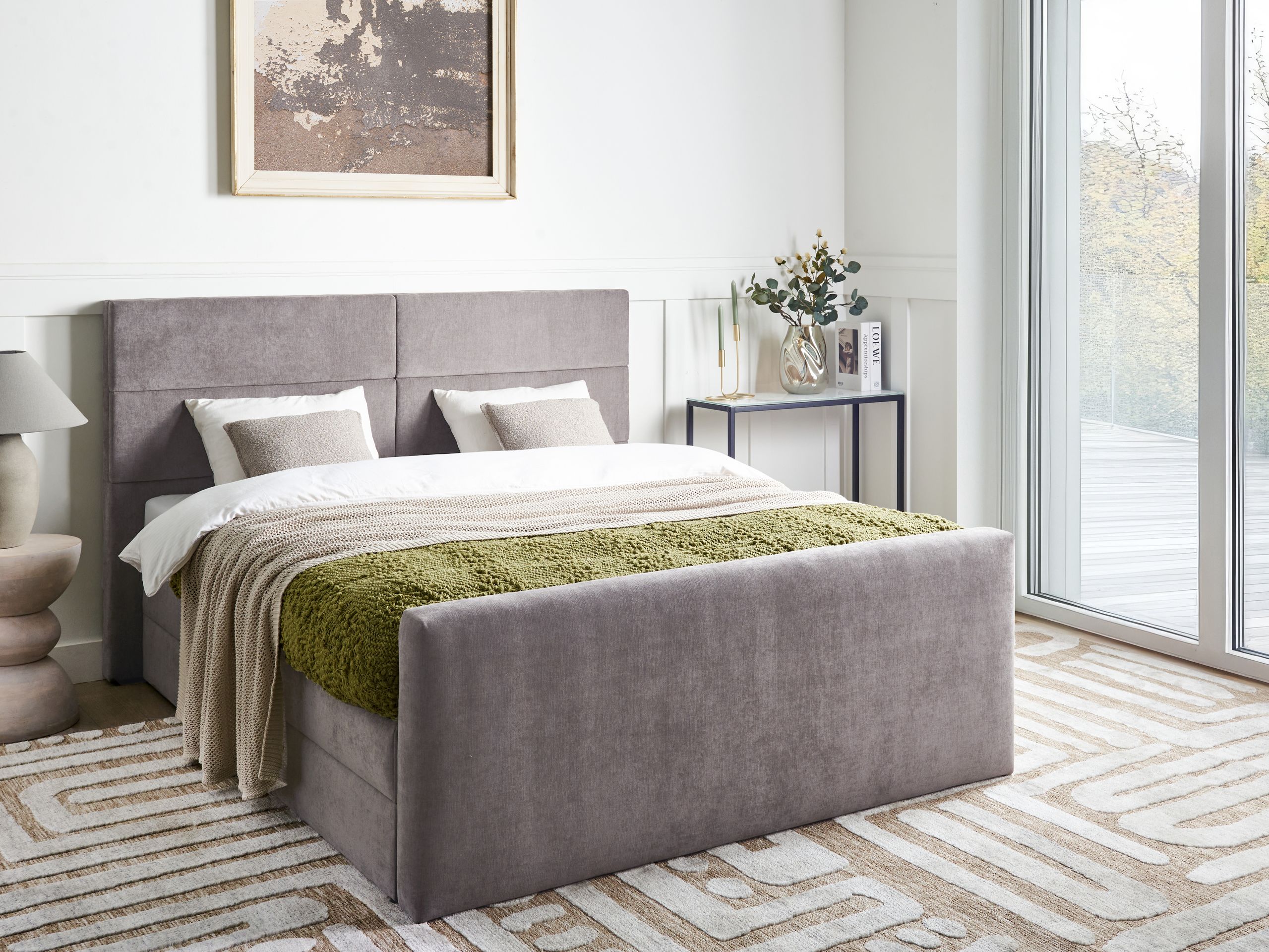 Perinteinen verhoiltu jenkkivuode säilytystilalla. Muuta makuuhuoneesi tyylikkääksi tyyssijaksi tällä upealla jenkkisängyllä. Korkealaatuisella, neutraalin sävyisellä polyesterikankaalla verhoiltu sänky sulautuu vaivattomasti mihin tahansa sisustukseen. Sängyn rungon sisään kätketyt kaksi säilytyslokeroa tarjoavat käytännöllisen paikan vuodevaatteiden ja muiden tekstiilien säilytykseen, ja kaasunostomekanismit tekevät säilytystiloihin pääsystä helppoa. Hyvin suunniteltu rakenne ja mukavat Bonnell-joustinpatjat tarjoavat tasaisen tuen koko keholle, varmistaen parhaat mahdolliset yöunet.