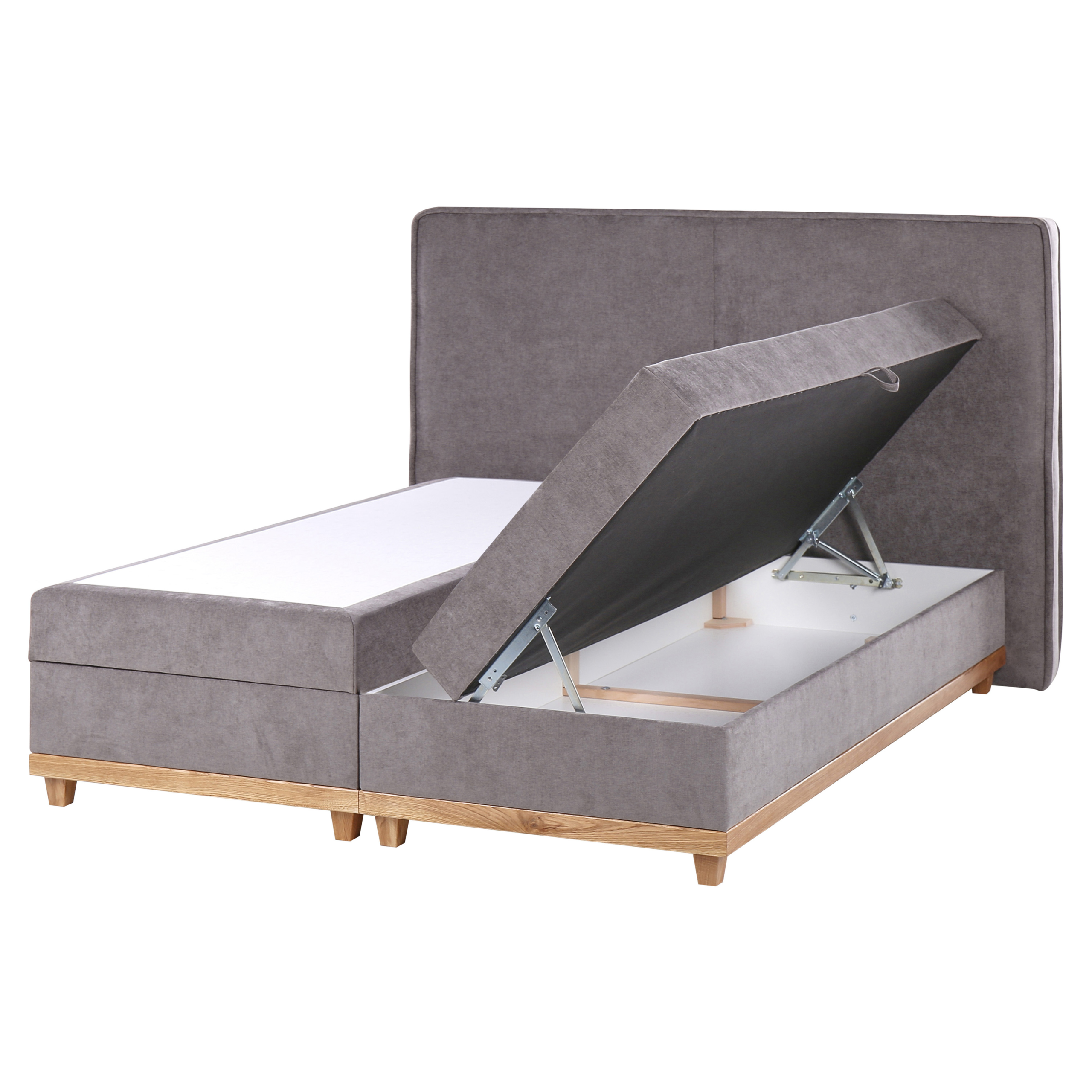 Kangasverhoiltu parisänky säilytystilalla. Nauti rentouttavasta ja mukavasta unesta tässä tyylikkäässä mutta käytännöllisessä jenkkisängyssä. Kestävä, neutraalin sävyinen kangasverhoilu sopii mihin tahansa sisustukseen. Sängynpohjassa olevat koristeelliset puiset lankut lisäävät muotoiluun vuosisadan puolivälin tuntua. Bonnell-joustinpatjat lisäävät tukea ja vakautta, mukautuen kehosi muotoihin ja painoon. Hillitysti koristeltu sängynpääty antaa vuoteelle ripauksen hienostuneisuutta. Tilavat säilytystilat sängyn alla toimivat käytännöllisellä kaasunostomekanismilla, mahdollistaen vuodevaatteiden ja muiden tavaroiden säilytyksen.