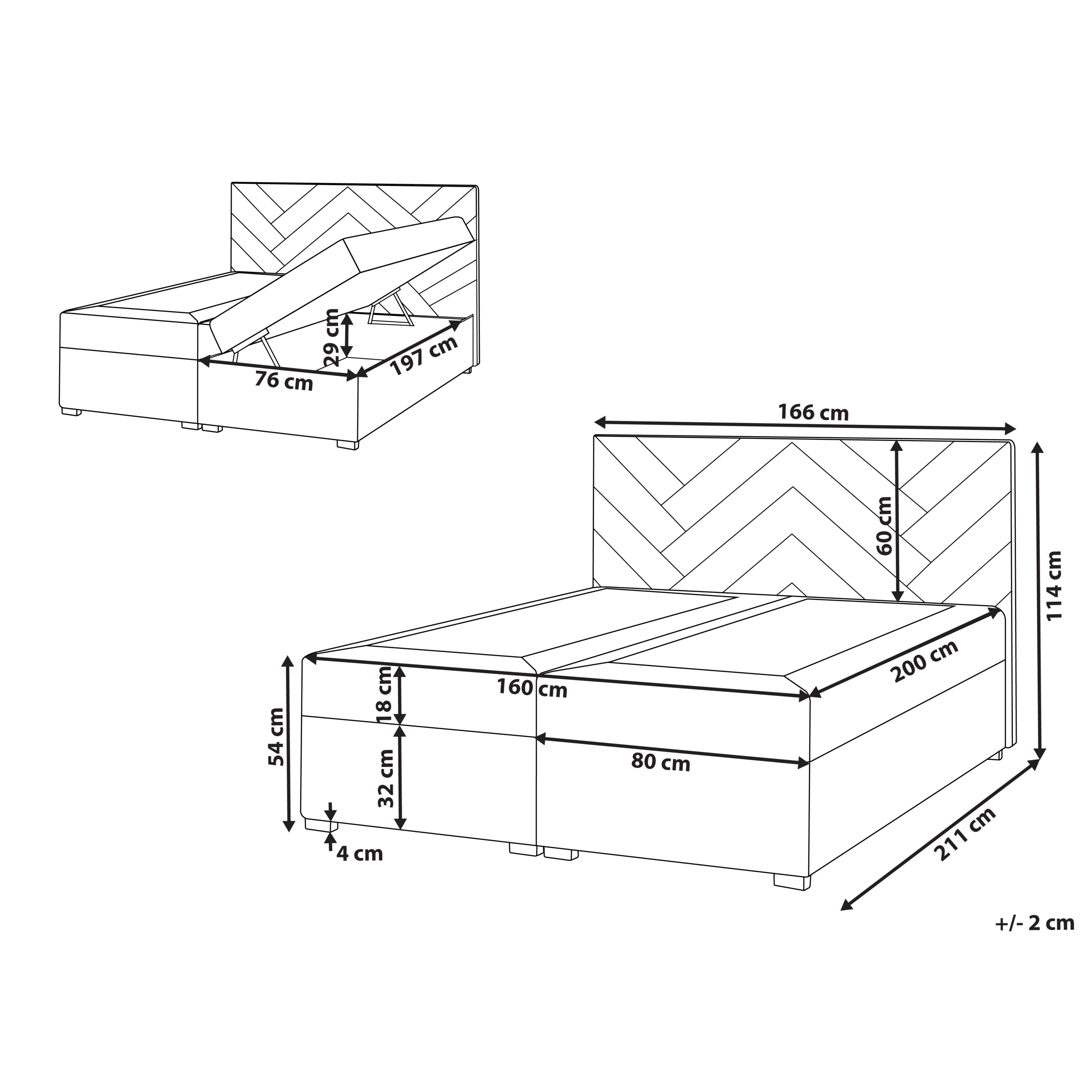 Jenkkisänky säilytystilalla kangas ESQUIRE 160 x 200 cm...