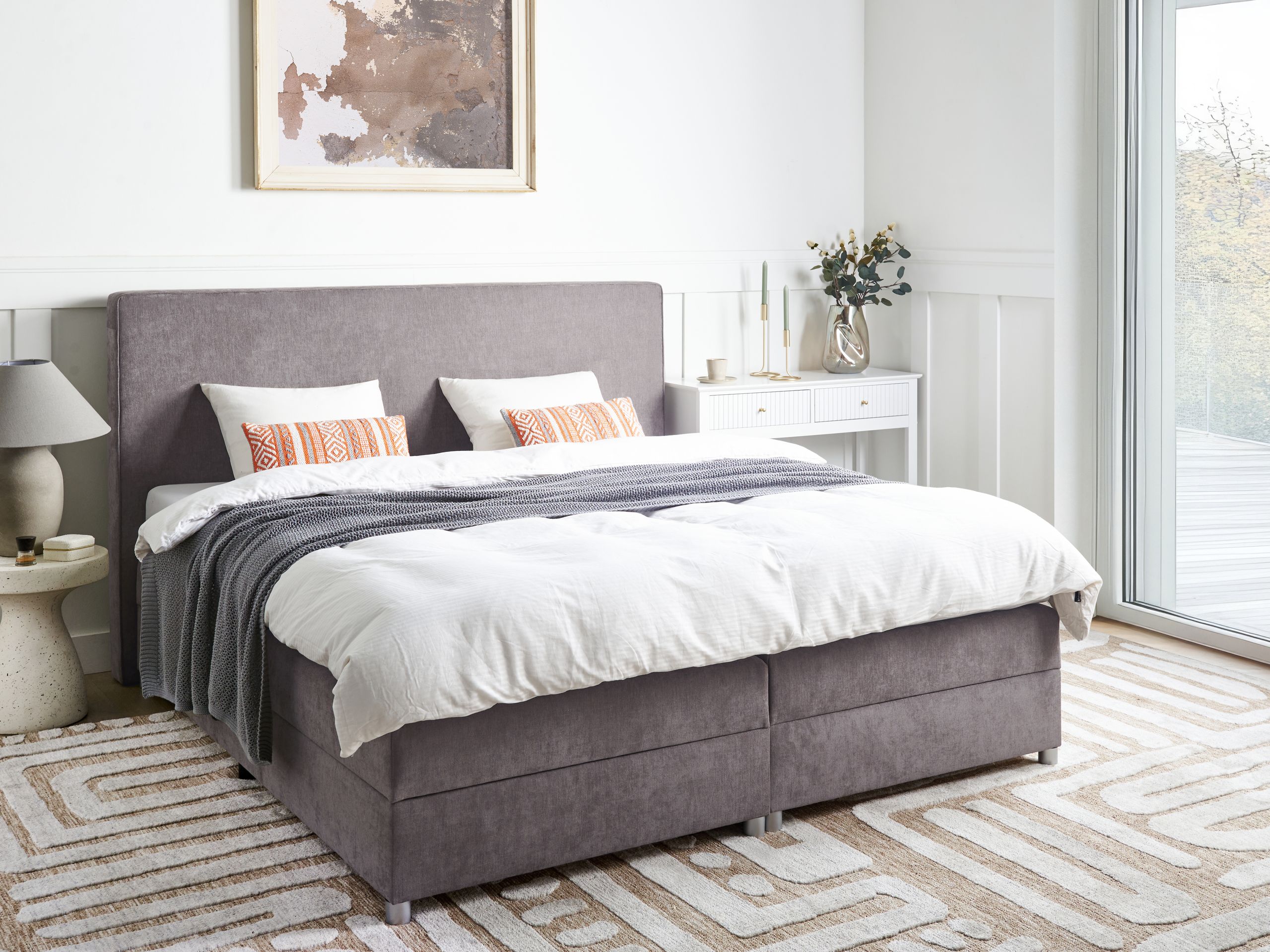 Perinteinen jenkkivuode säilytystilalla. Kohota päivittäinen mukavuus uudelle tasolle tällä erittäin mukavalla ja modernilla jenkkisängyllä. Vankka rakenne on verhoiltu kestävällä ja neutraalin sävyisellä polyesterikankaalla, mikä tekee sängystä täydellisen minkä tahansa tyyliseen makuuhuoneeseen. Bonnell-joustinpatja tarjoaa optimaalisen kehon tuen ja hyvän kimmoisuuden, edistäen erinomaista yöunen laatua. Lisäksi rungon sisään kätkeytyvien kätevien, kaasunostomekanismilla varustettujen säilytyslokeroiden ansiosta vuodevaatteet ja muut tekstiilit pysyvät järjestyksessä ja ovat helposti saatavilla.