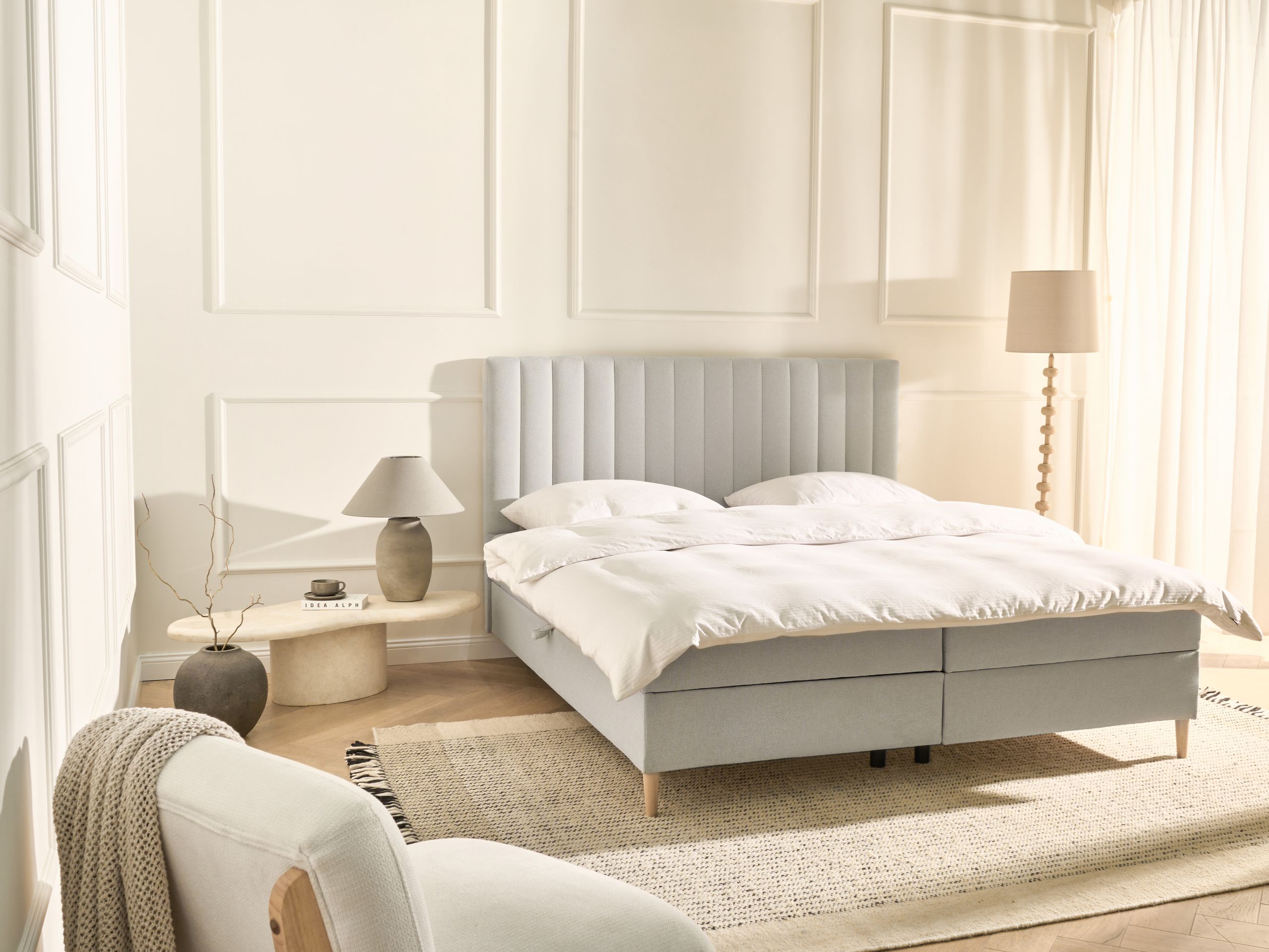 Tikattu jenkkisänky säilytystiloilla. Tuo makuuhuoneeseen tyylikäs ja käytännöllinen keskipiste tällä minimalistisella jenkkisängyllä. Sängynrunko on verhoiltu neutraalin sävyisellä, helposti puhdistettavalla polyesterikankaalla, joka sulautuu saumattomasti monenlaisiin sisustuksiin. Kaksi sivusta avattavaa säilytystilaa tarjoavat paikan ylimääräisille vuodevaatteille, tyynyille tai muille tavaroille, mikä auttaa pitämään makuuhuoneen siistinä ja järjestyksessä. Se tarjoaa vaivattoman tavan säästää tilaa ja lisätä huoneeseen modernia tyyliä.