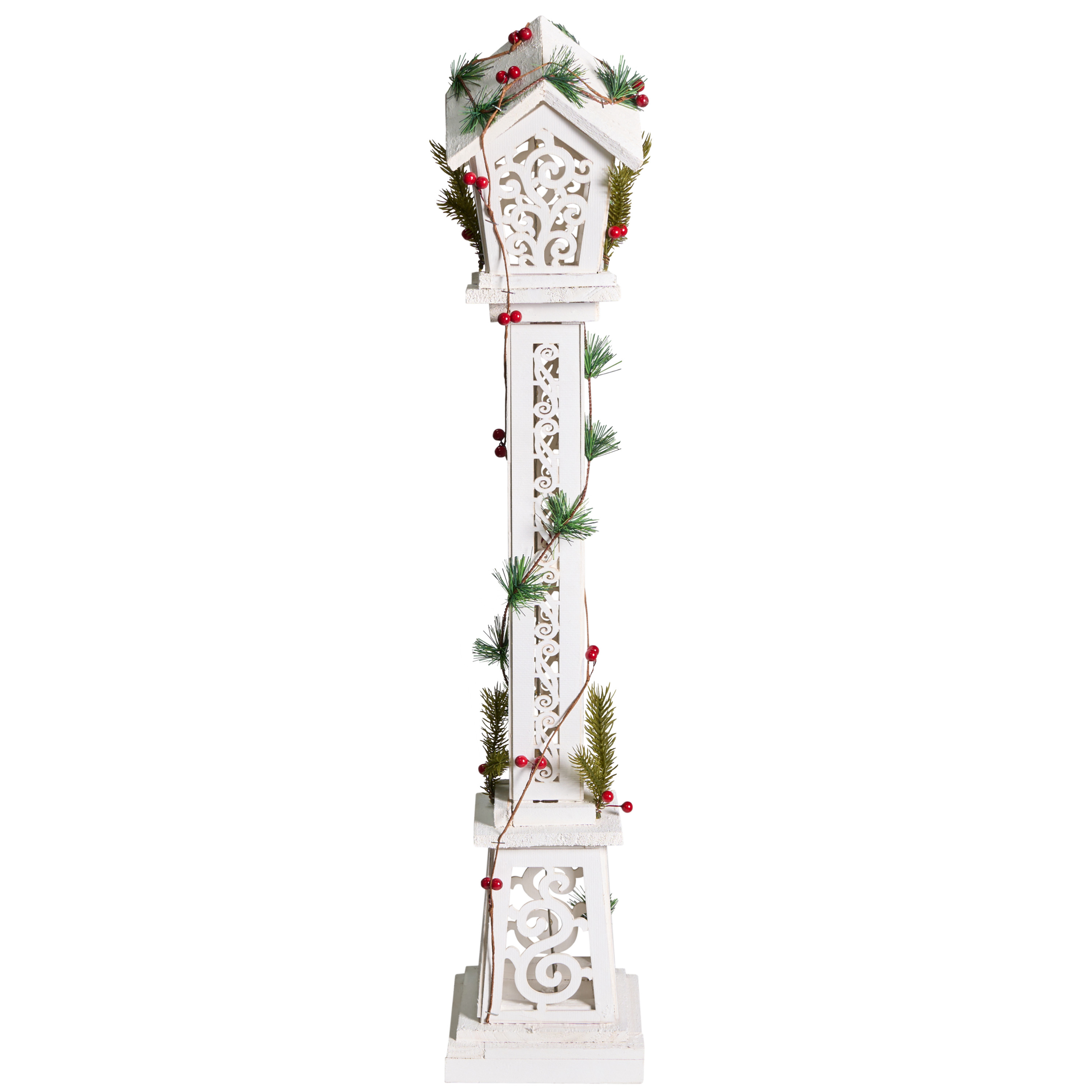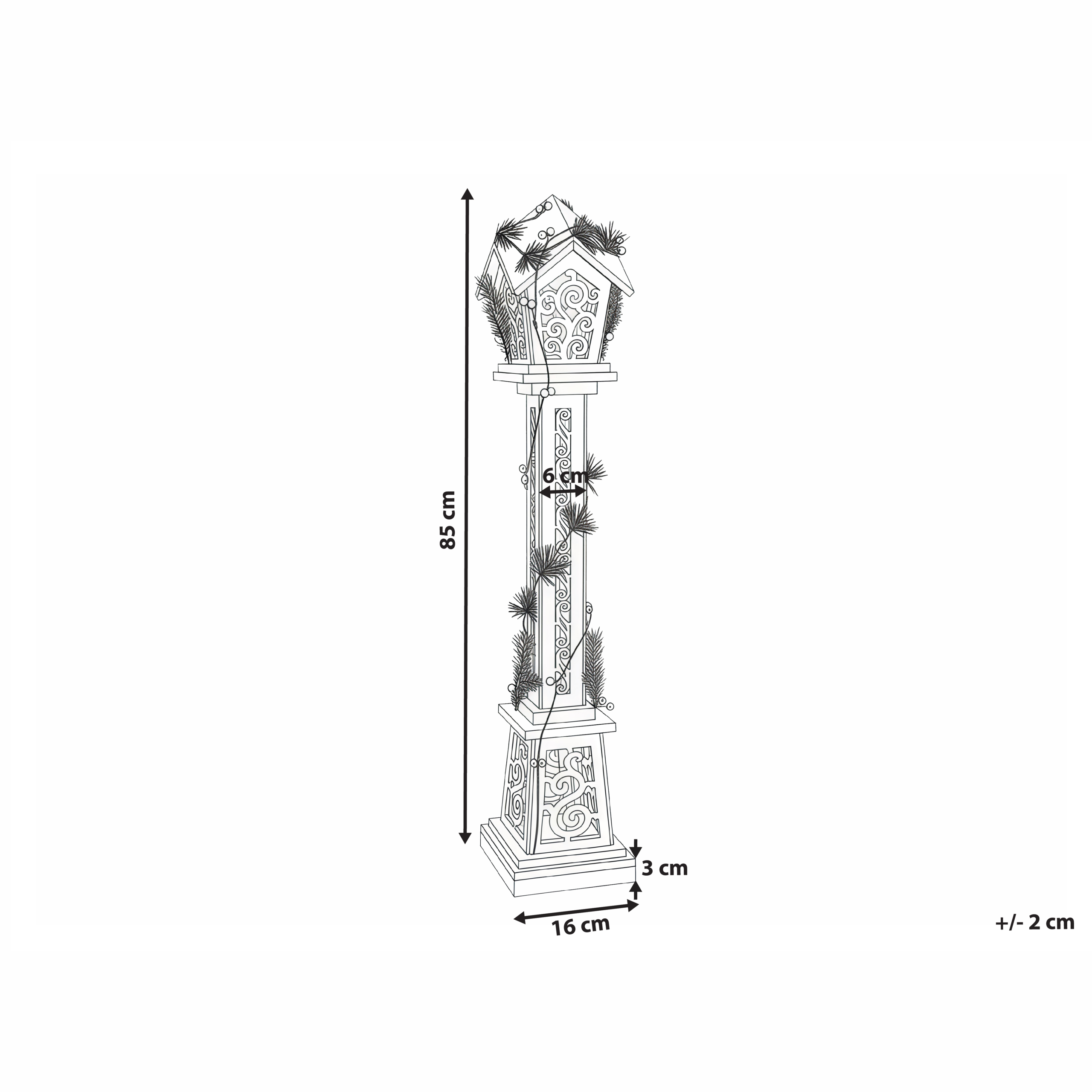 Käsintehty joulukoriste LED-valoilla. Korosta joulukoristelua tällä viehättävällä LED-koristeella. Eleganttia valopylvästä muistuttava koriste on viimeistelty klassisilla kaiverruksilla, jotka päästävät läpi LED-valojen lämpimän hehkun. Koriste on käsin valmistettu laadukkaasta jalokuusesta, minkä ansiosta se ei ole vain kestävä, vaan hehkuu myös luonnonkauneutta. Se sopii täydellisesti koristamaan eteistä tai osaksi joulukoristelua.