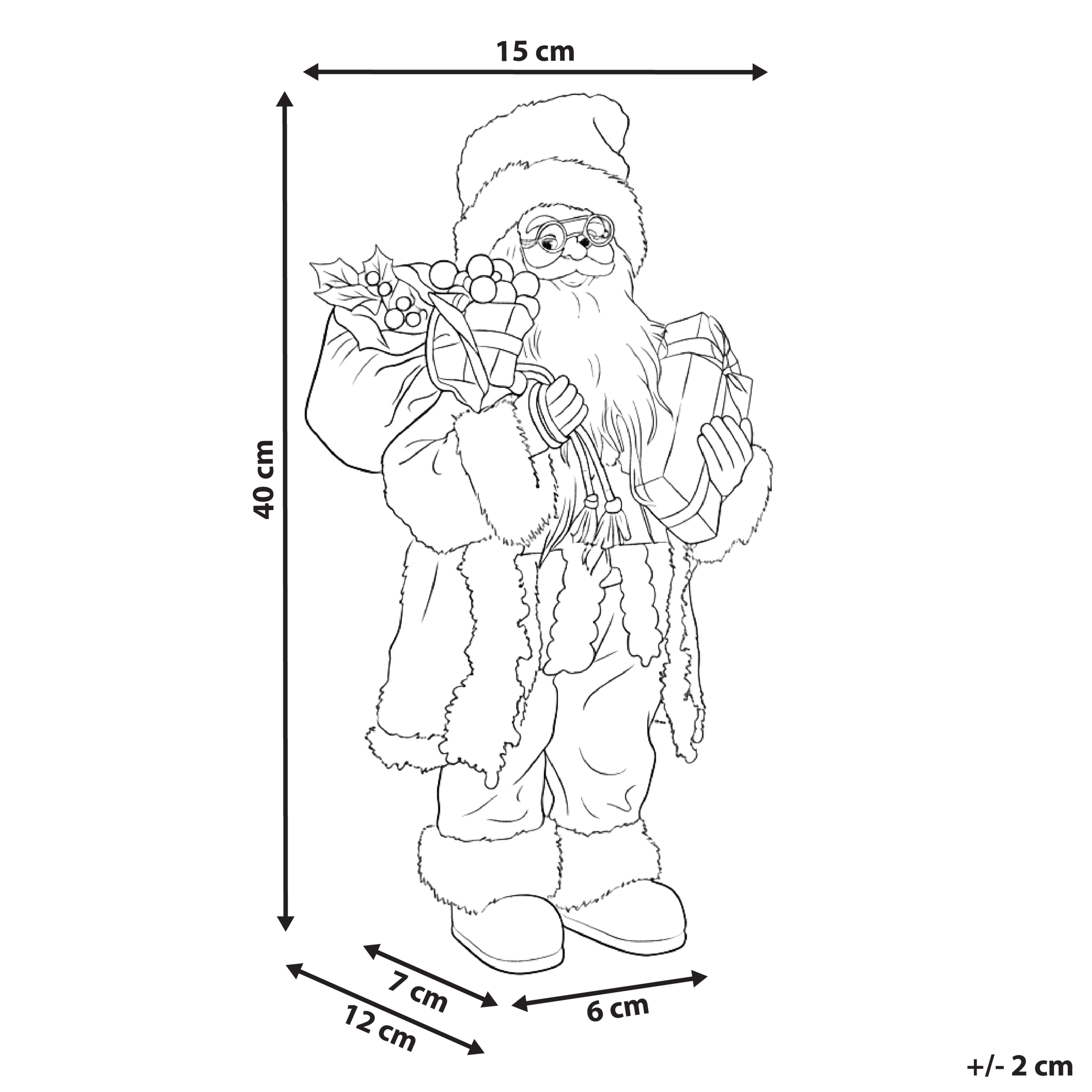 Käsintehty seisova joulupukkikoriste. Tämä yksityiskohtainen, käsin valmistettu koristejoulupukki lisää sesongin henkeä jokaiseen kotiin. Juhlavasti puettu ja lahjalla sekä lahjasäkillä varustettu pukki toimii hurmaavana koristeena missä tahansa sisustuksessa. Aseta se joulukuusen ääreen, takanreunalle tai pöydälle ja nauti sen tuomasta taianomaisesta joulutunnelmasta.