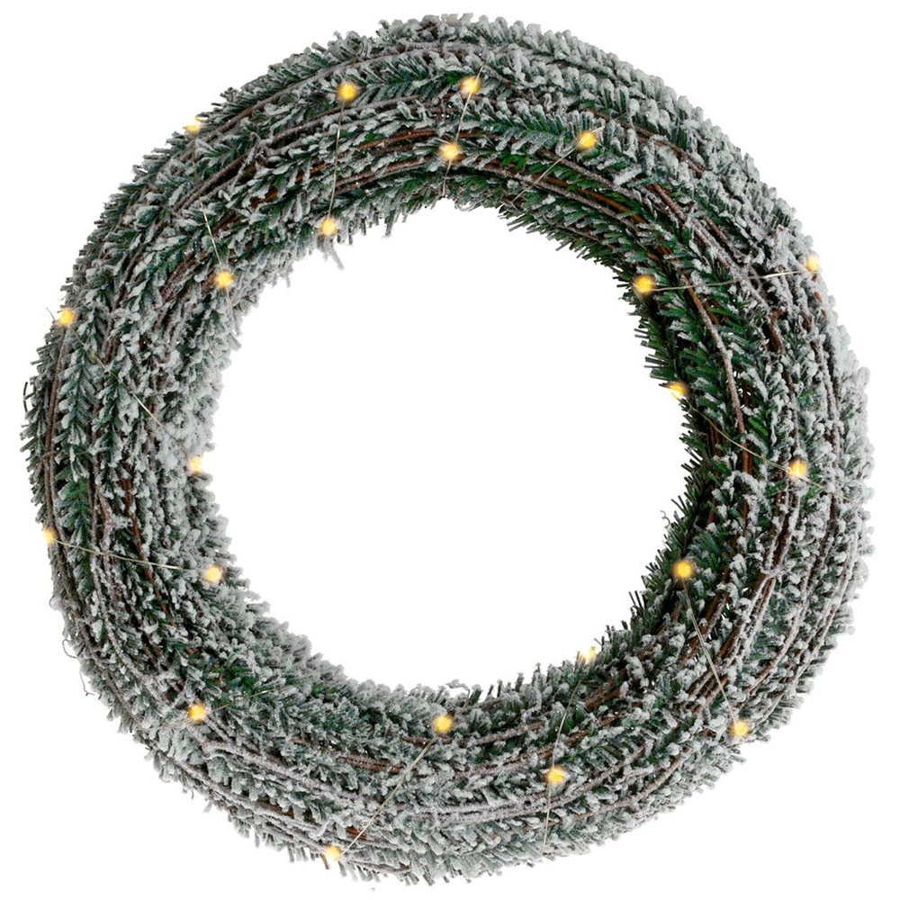 LED-VALAISTUS - Joulukranssia valaisevat lämpimän valkoiset LED-valot - 30 kpl. Virtalähde: 3 x AA 1,5 V paristot (eivät sisälly toimitukseen). Johdon pituus 150 cm.