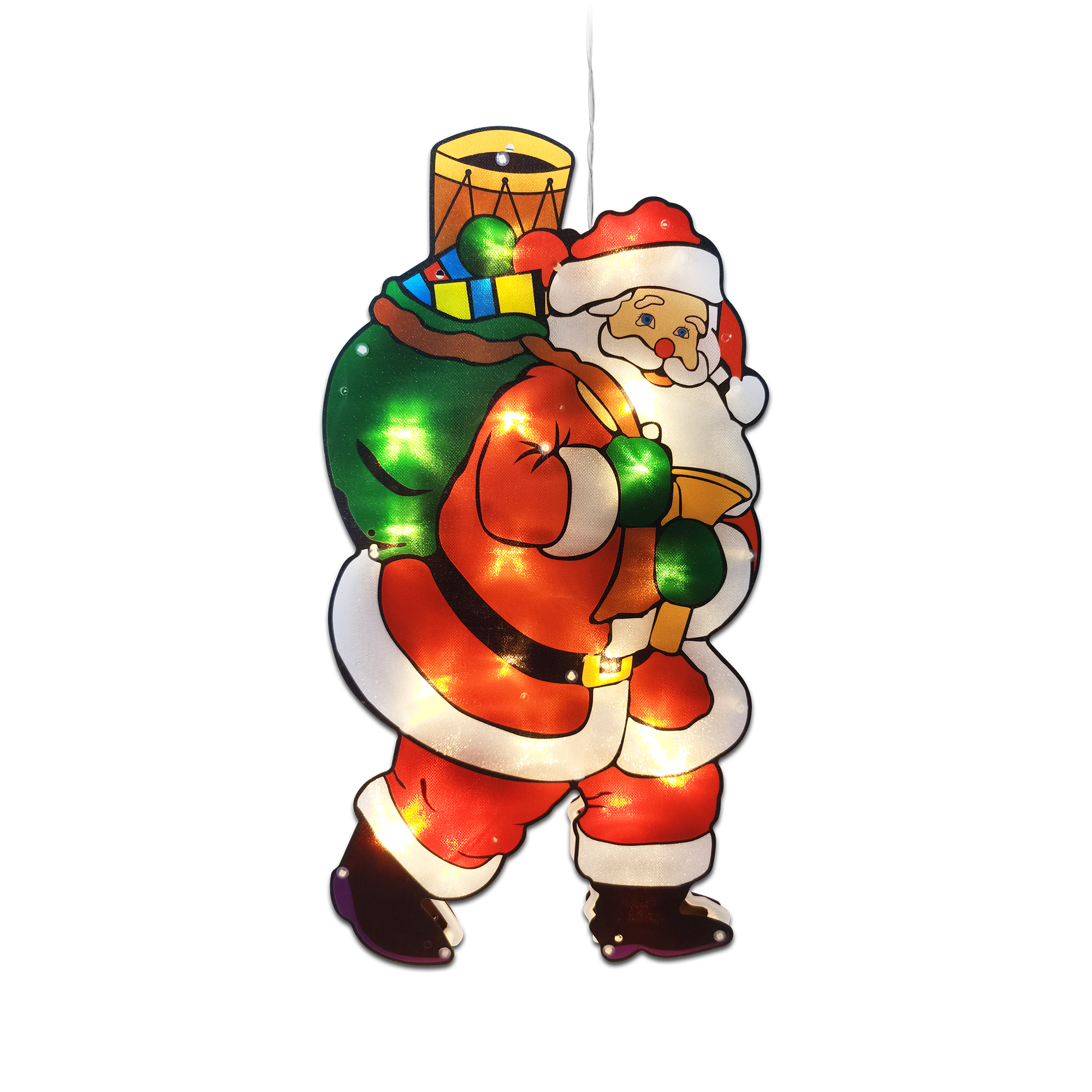 Tämä joulupukki-joulukoriste on täydellinen lisä sisustukseesi tänä jouluna. Tämä korkealaatuinen LED-valo on pitkäikäinen, joten se koristaa kotiasi vuosiksi eteenpäin. Jos etsit riippuvaa koristetta, joka auttaa sinua luomaan ainutlaatuisen jouluasetelman, tämä LED-joulupukki on täydellinen valinta.