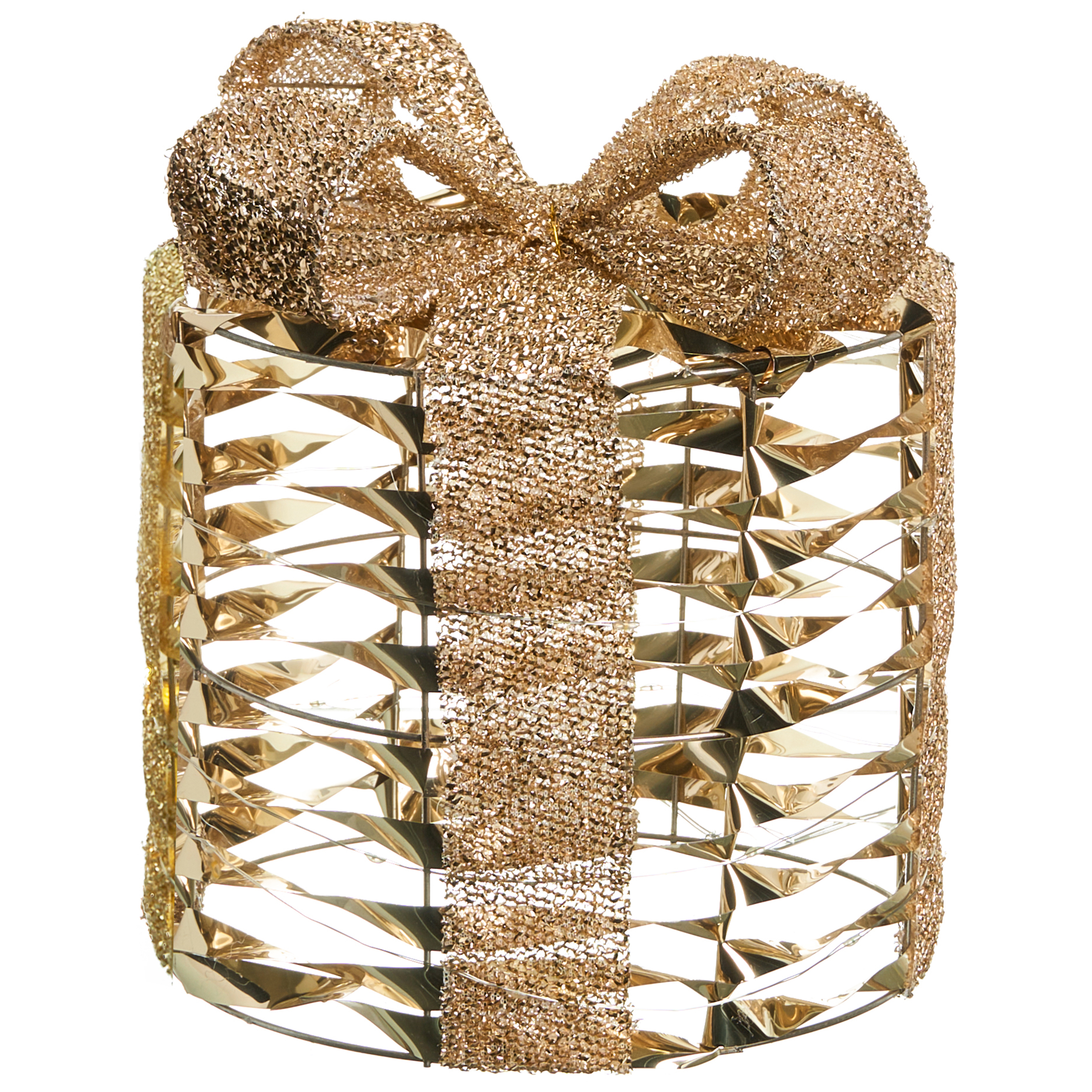 Suloinen kolmen LED-koristelahjan setti. Tämä kolmen kullanvärisen LED-koristelahjan setti tuo kotiin tyylikkyyttä ja juhlavaa, jouluista loistetta. Jokainen pakkaus on viimeistelty kauniisti kimaltavilla, yhteensopivilla lahjanauhoilla, mikä luo elegantin yhtenäisen ilmeen. Sisäänrakennetut LED-valot luovat lämpimän, tunnelmallisen hehkun, mikä tekee niistä täydelliset lisät joulukoristeluun.