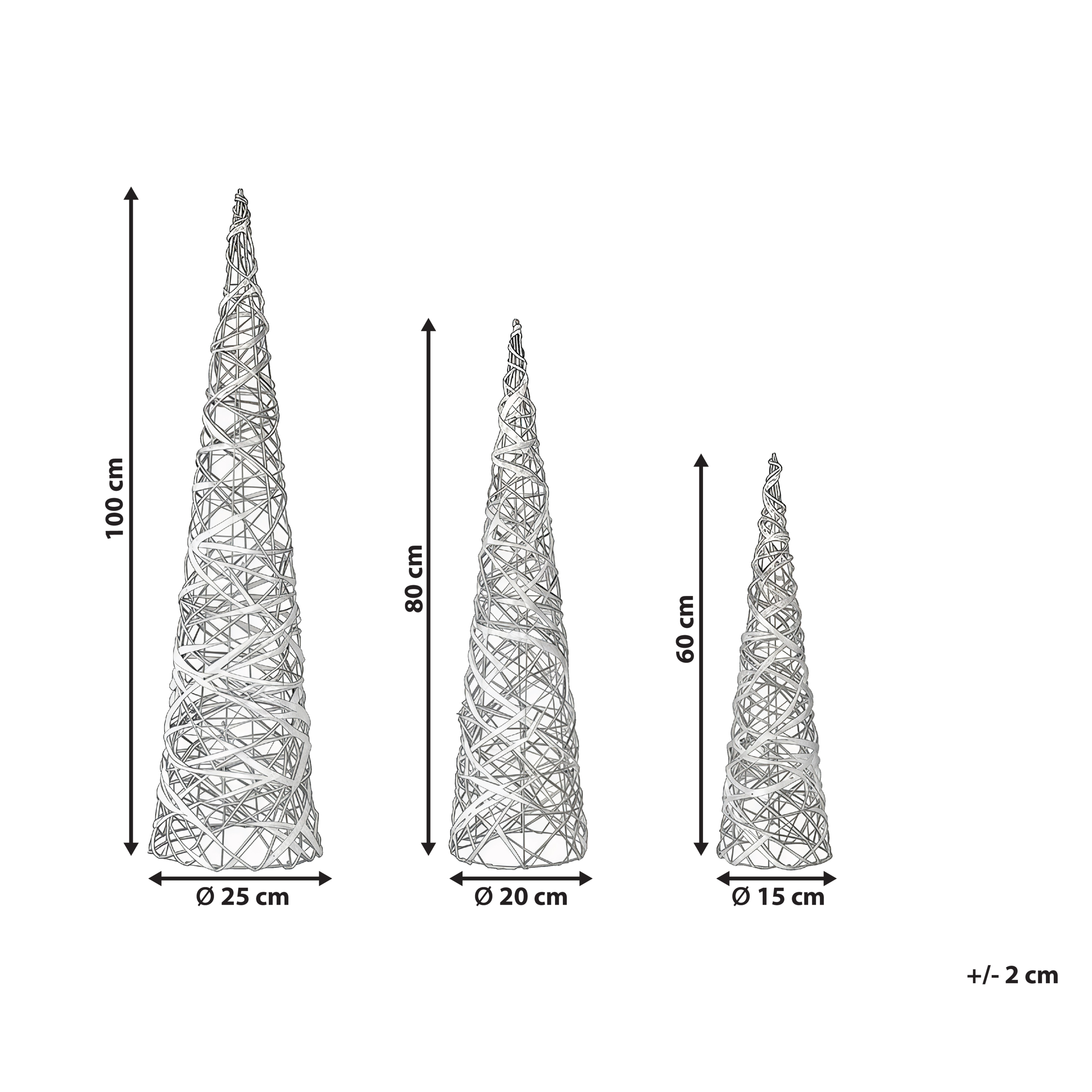 Joulukoristesetti 3 kpl TUELSO Joulukuusi 60/80/100 cm Valkoinen/kulta