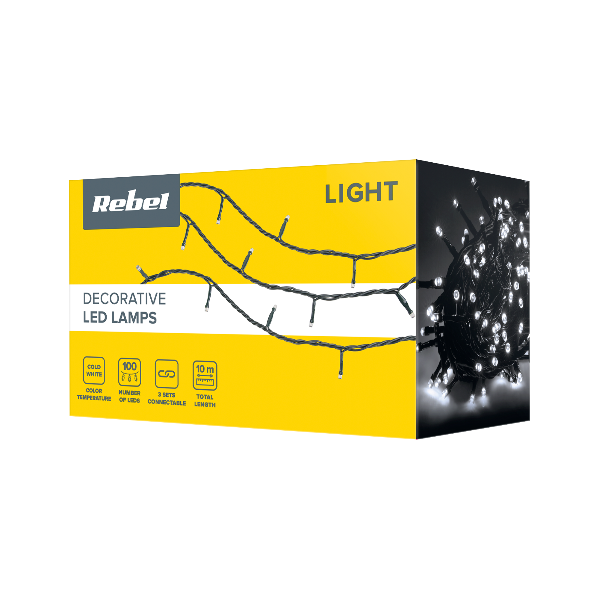 Rebel LED -jouluvalot ulkokäyttöön, 10 m, viileä valkoinen, himmennystoiminnolla