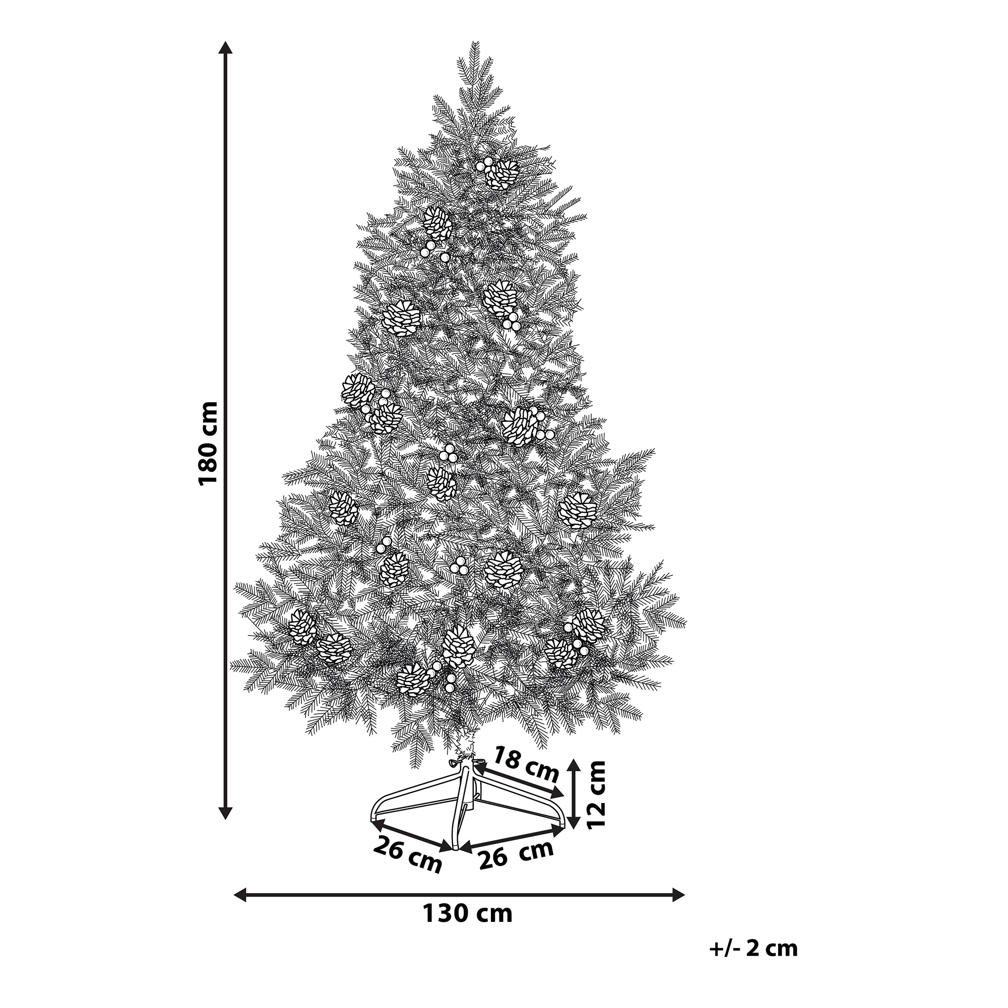 Hurmaava tekokuusi huurteisilla oksilla, kävyillä ja marjoilla. Tuo kotiisi joulun tunnelmaa tällä upealla joulukuusella. Sen huurteiset oksat on koristeltu kävyillä sekä orjanlaakerin marjoilla, minkä ansiosta se näyttää kauniilta myös ilman muita koristeita. Kuusen oksia on mahdollista taivutella niin, että saat siitä paksumman näköisen. Korkealaatuisesta synteettisestä materiaalista valmistettuna se kestää käyttöä useita vuosia. Mukana toimitettavassa metallijalassa on lattiaa suojaavat kumiset tallat.