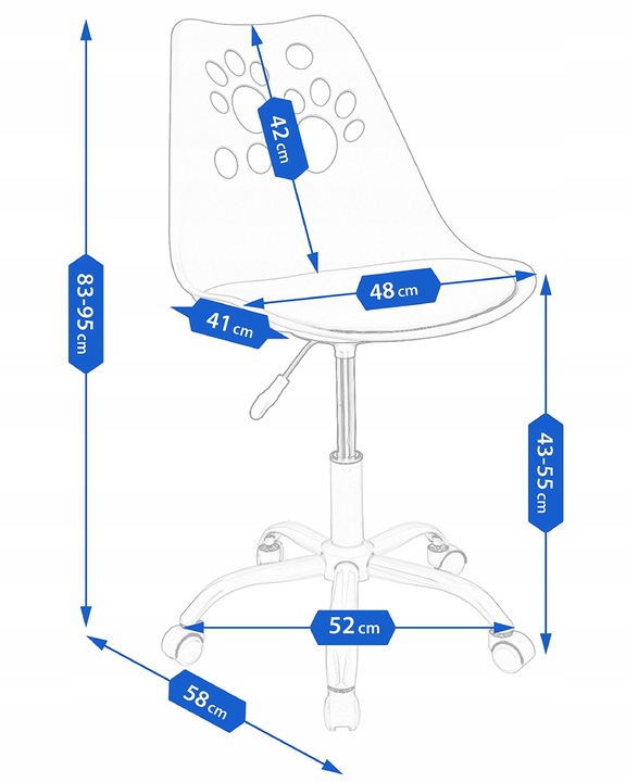- Istuinkorkeus: 43–55 cm