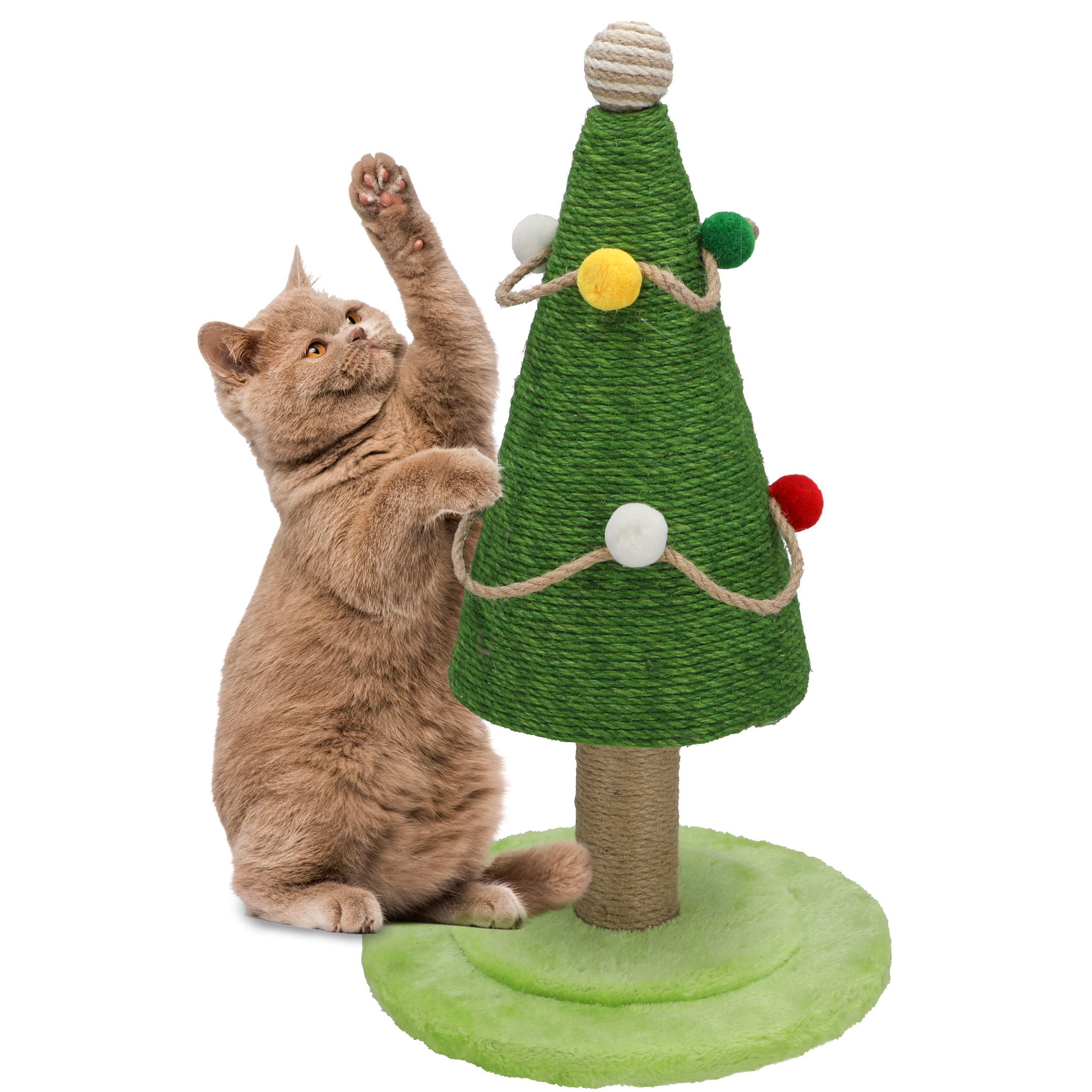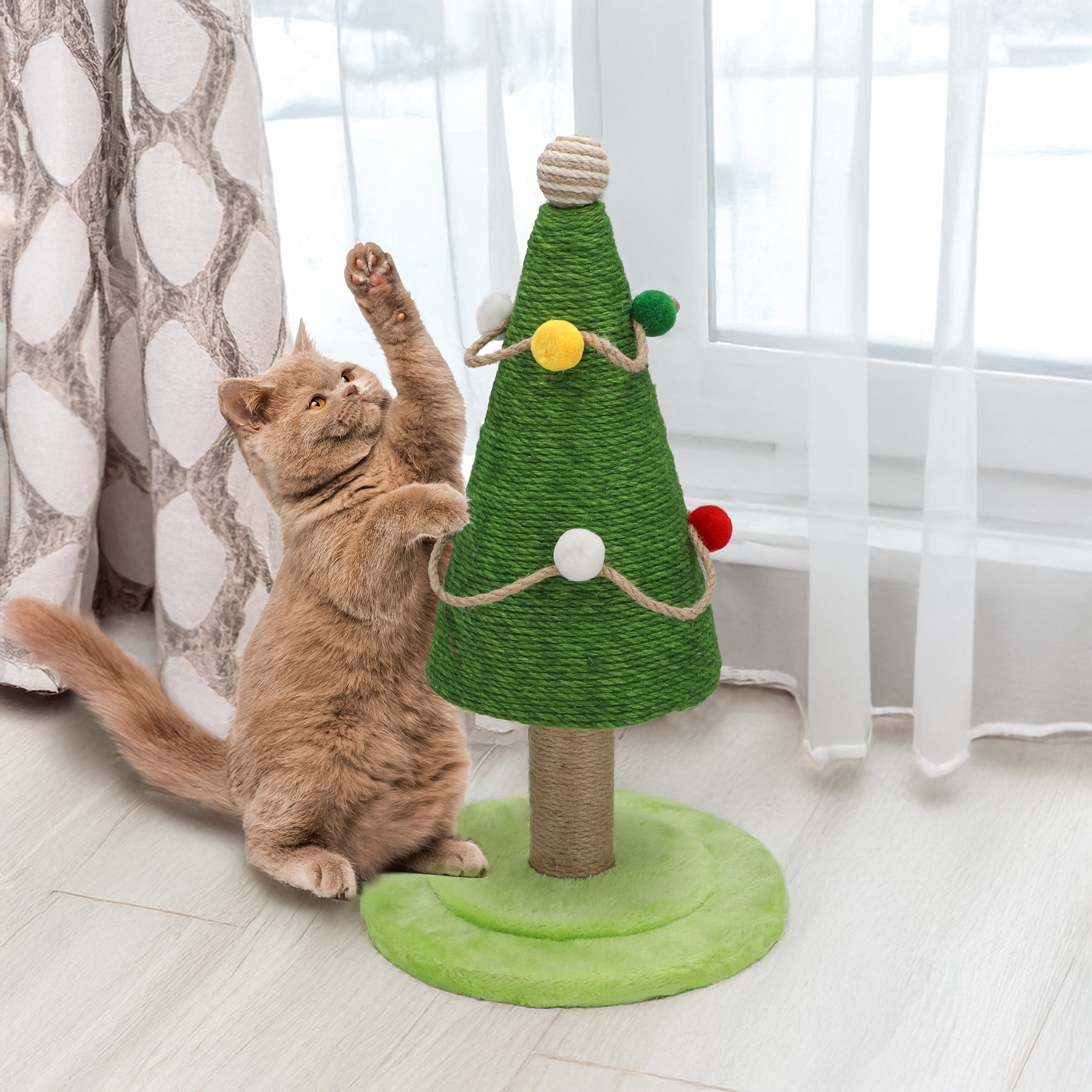 Tämä joulukuusen muotoinen raapimapuu on sekä viihdyttävä lelu lemmikillesi että kaunis joulukoriste kotiisi. Laadukkaasta materiaalista valmistettuna se ilahduttaa kissaa pitkään.