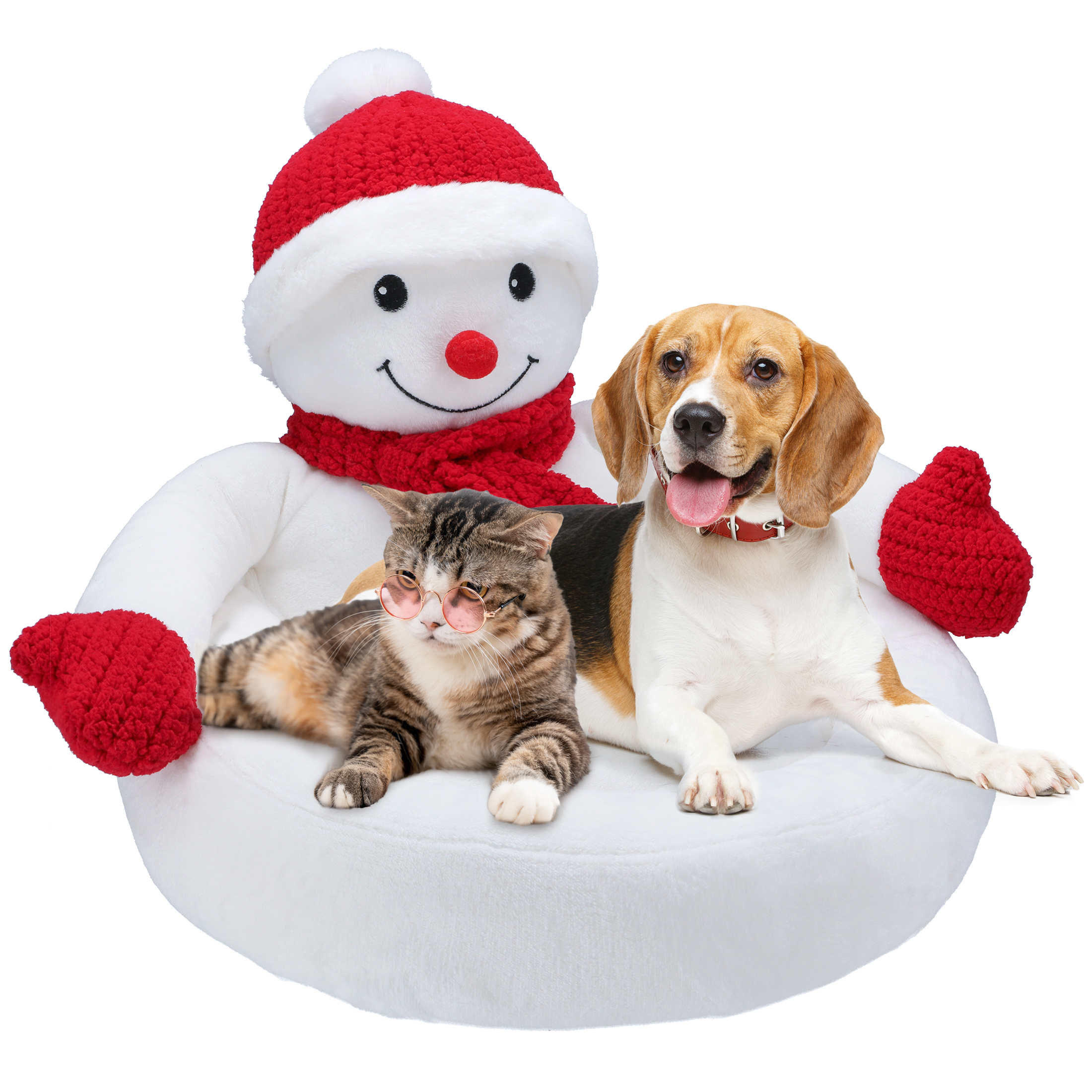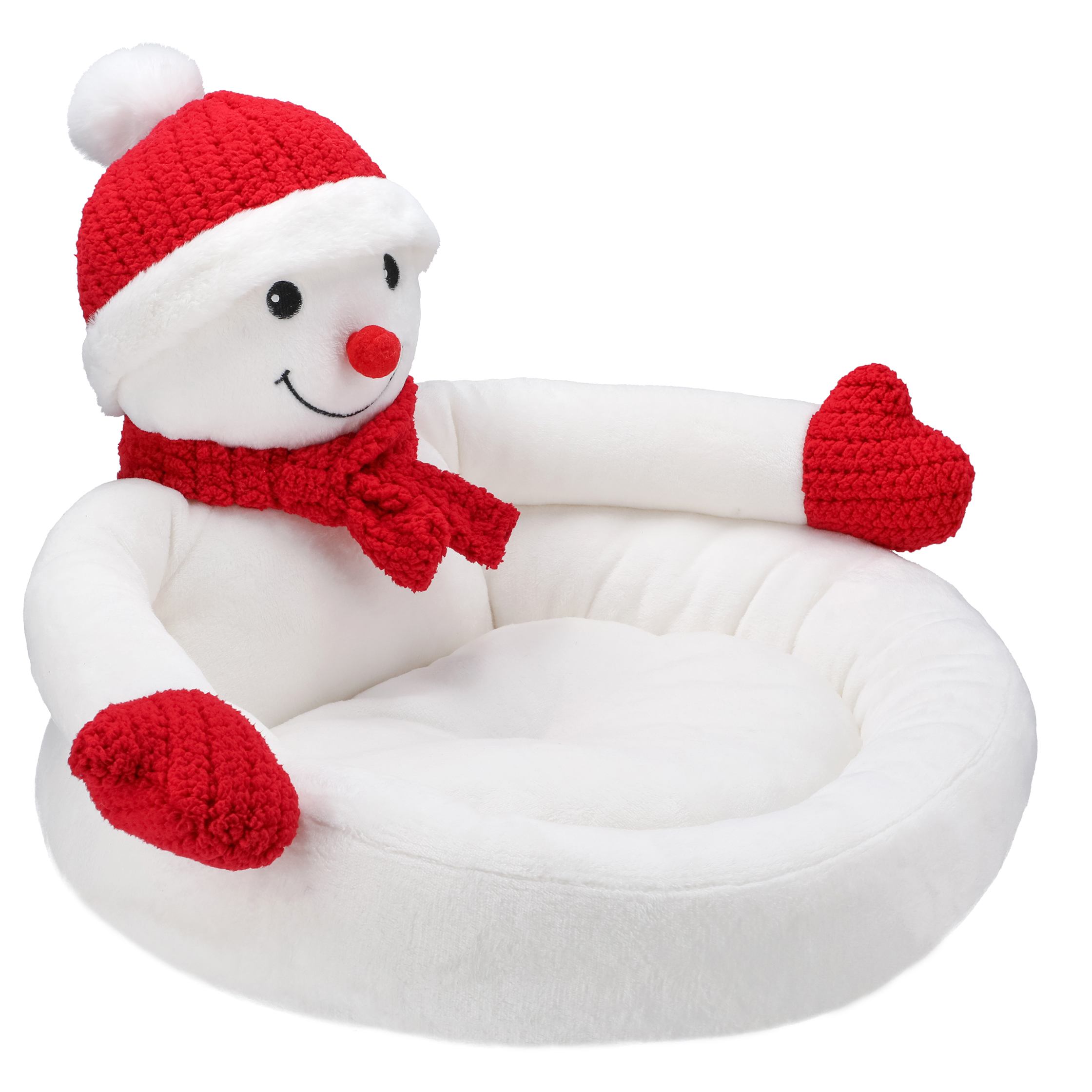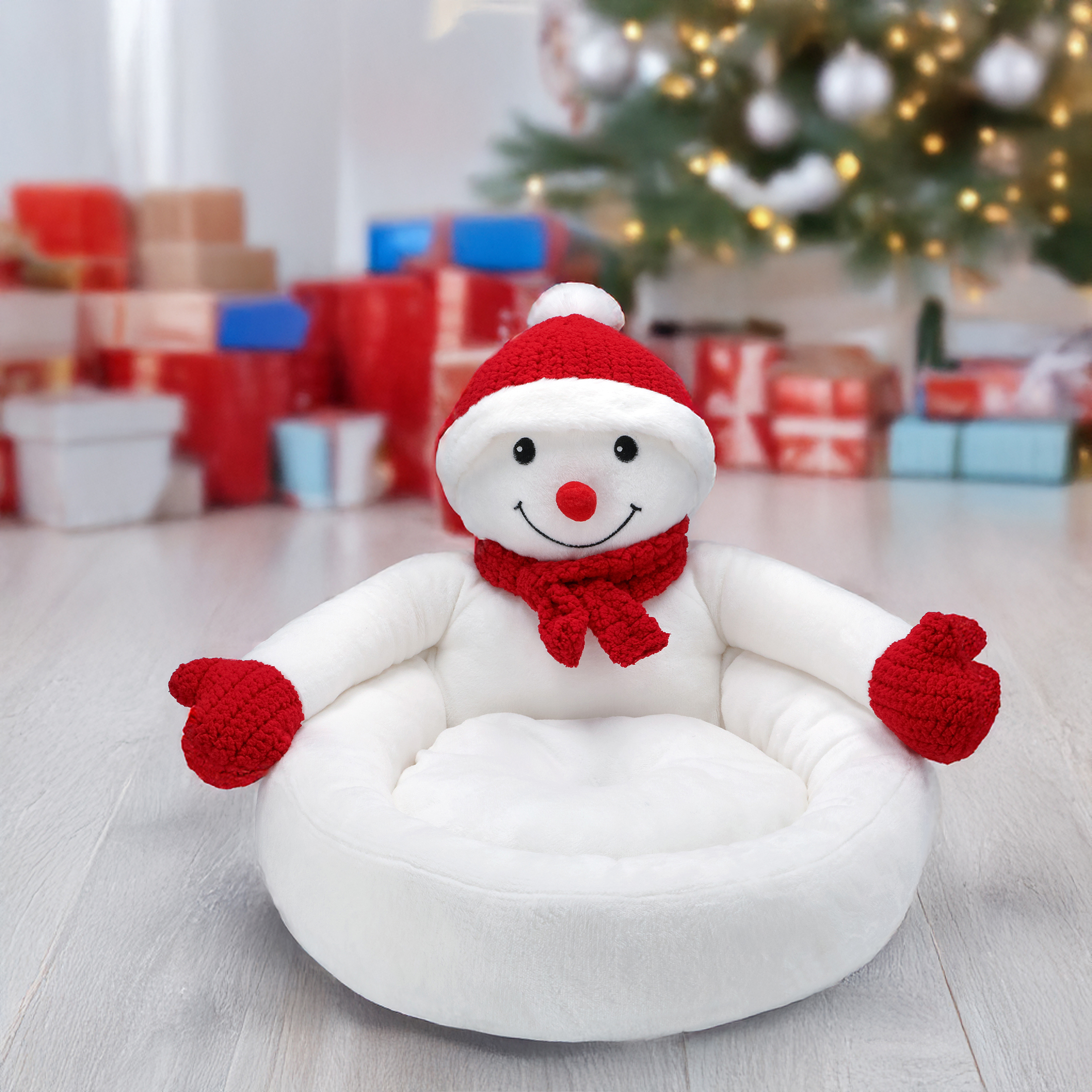 Tämä lemmikin peti, jossa on jouluteemainen lumiukkokuvio, luo ainutlaatuisen ja lämpimän joulutunnelman sekä toimii myös kauniina sisustuselementtinä. Lumiukolla on punaiset lapaset, huivi ja hattu. Peti on erittäin miellyttävä koskettaa, ja kohotetut reunat antavat lemmikille mukavan paikan levätä ja rentoutua täysin. Pehmeä tyyny halaa lemmikkiä nukkuessa, ja liukumaton pohja varmistaa vakauden ja helpon puhtaanapidon.