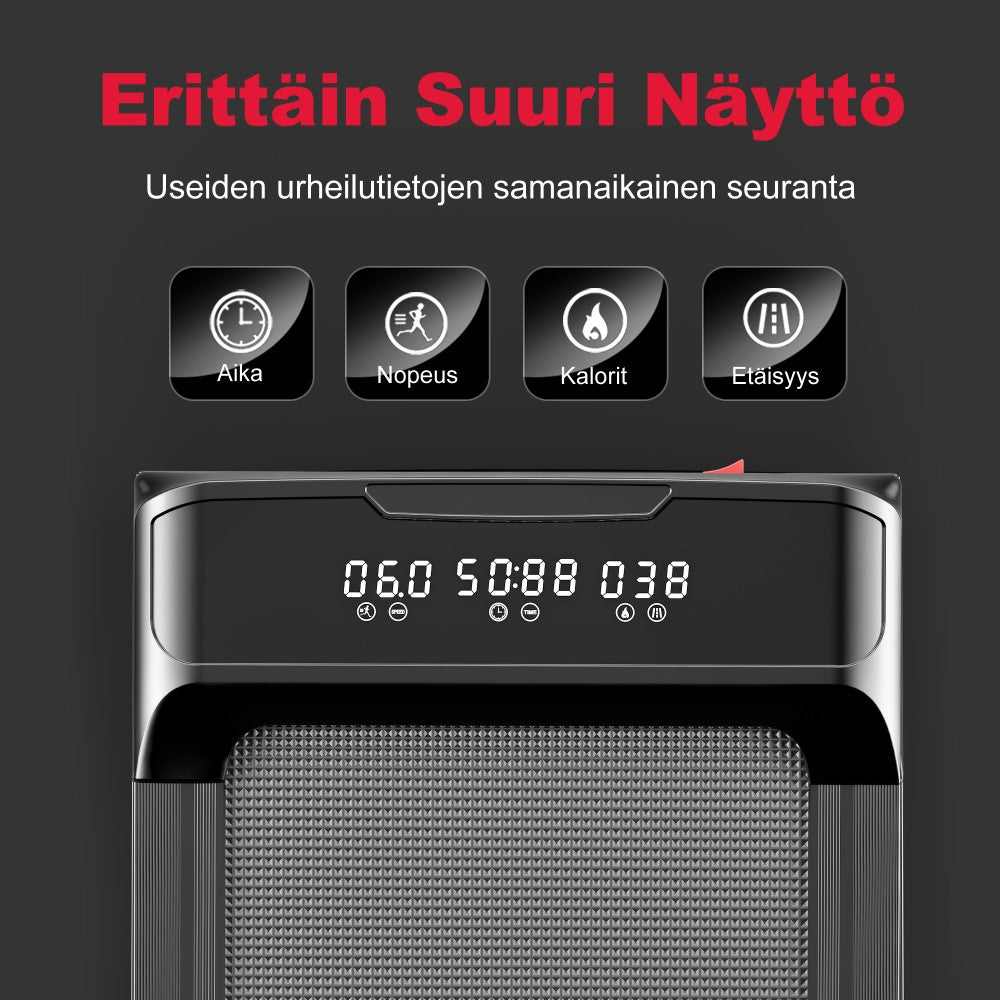 Suuri LED-näyttö näyttää samanaikaisesti harjoittelun ajan, matkan, kulutetut kalorit ja nopeuden. Näin voit seurata edistymistäsi helposti harjoituksen aikana. Kompakti muotoilu ja säädettävä nopeus