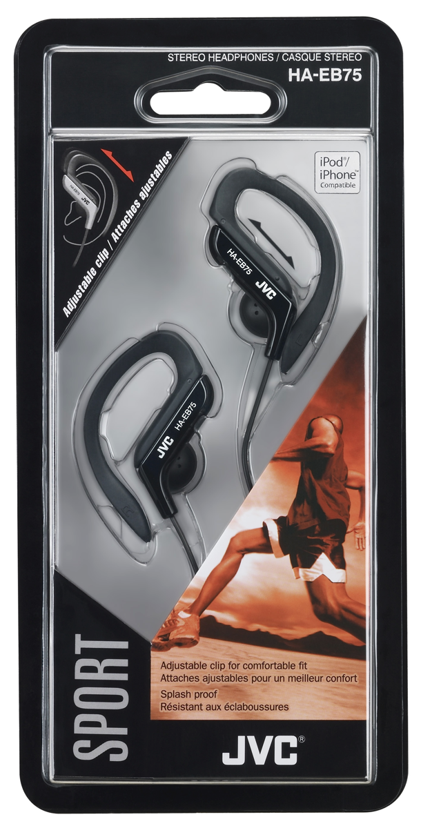 Urheilukuulokkeet, joissa korvaklipsi ja säädettävät korvakupit mukavampaa istuvuutta varten, mustana