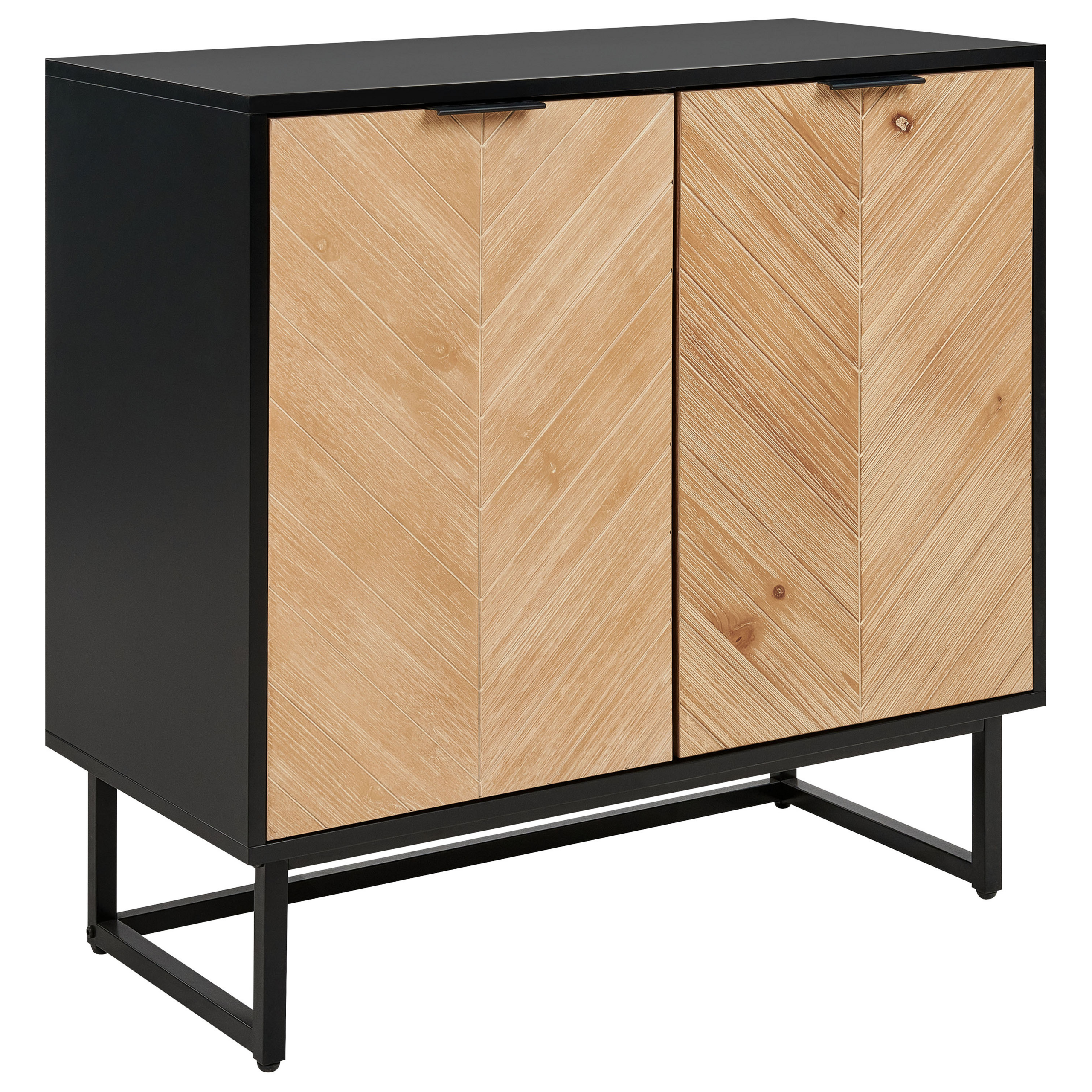 Skandinaavinen kaappi hyllyillä. Pidä makuuhuone tai olohuone järjestyksessä tällä skandinaavisella senkillä. Siinä on kaksi ovea, joiden taakse kätkeytyvät tilavat hyllyt sopivat erilaisten pikkuesineiden, vaatteiden ja muiden tärkeiden tavaroiden säilyttämiseen. Kaappi on valmistettu kestävästä mustaksi maalatusta MDF-levystä, jonka etuosaa koristaa tyylikäs puuviilu. Mustat kahvat sekä jalat ovat metallia. Se sulautuu erinomaisesti osaksi monenlaisia moderneja ja minimalistisia sisustustyylejä.