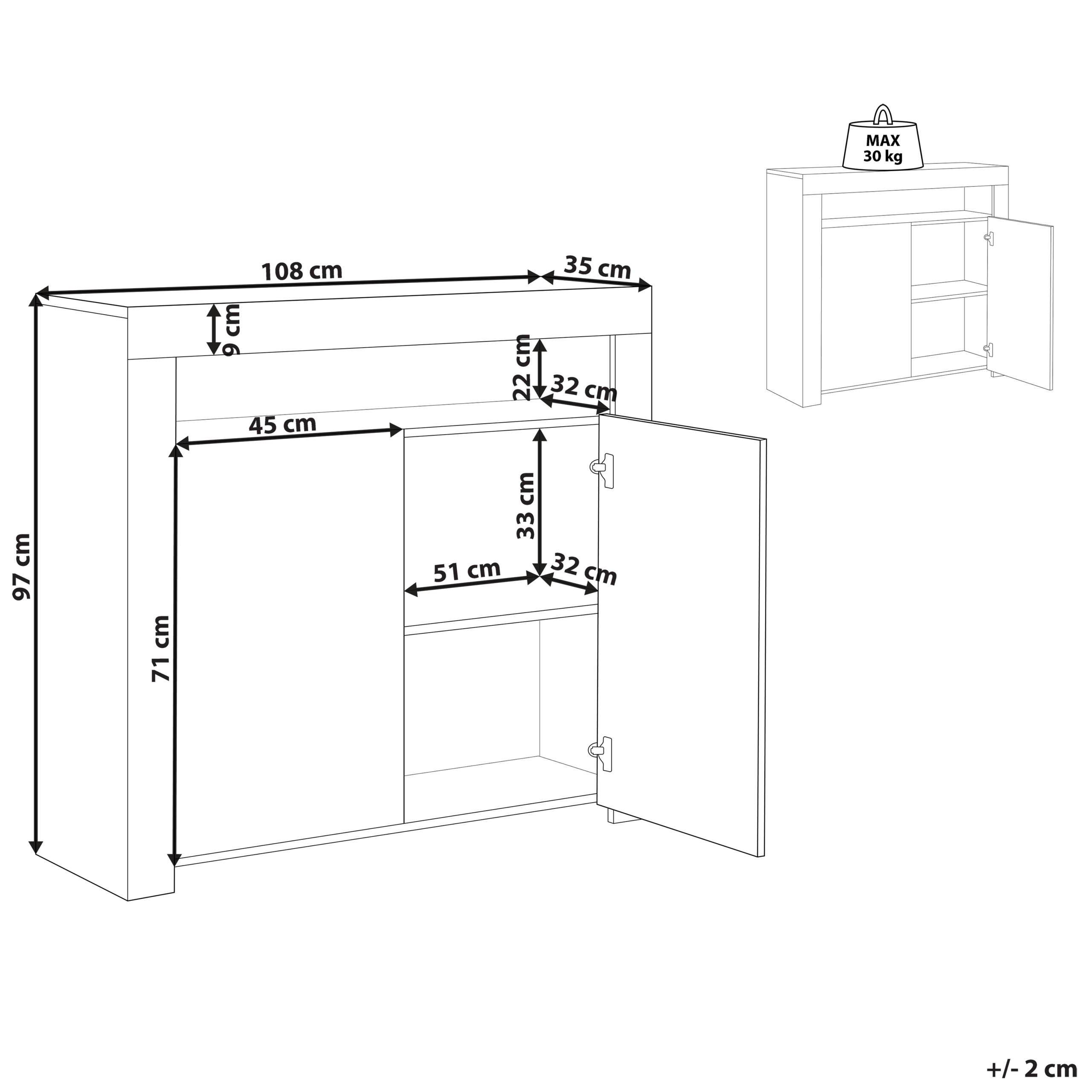 Minimalistinen kaappi hyllyillä ja LED-valolla. Tässä kaksiovisessa senkissä on neljä tilavaa hyllyä, jotka tarjoavat paljon säilytystilaa erilaisille tavaroille. Vankasta MDF-levystä valmistettu senkki sulautuu täydellisesti mihin tahansa moderniin sisustukseen, tuoden toimivuutta ja tyyliä. Mukana tulevassa LED-nauhassa on useita värivaihtoehtoja sekä 4 asetusta, jotka ovat ohjattavissa kaukosäätimen avulla. Sijoita senkki olohuoneeseen, eteiseen tai makuuhuoneeseen luomaan tunnelmallisen valaistuksen.