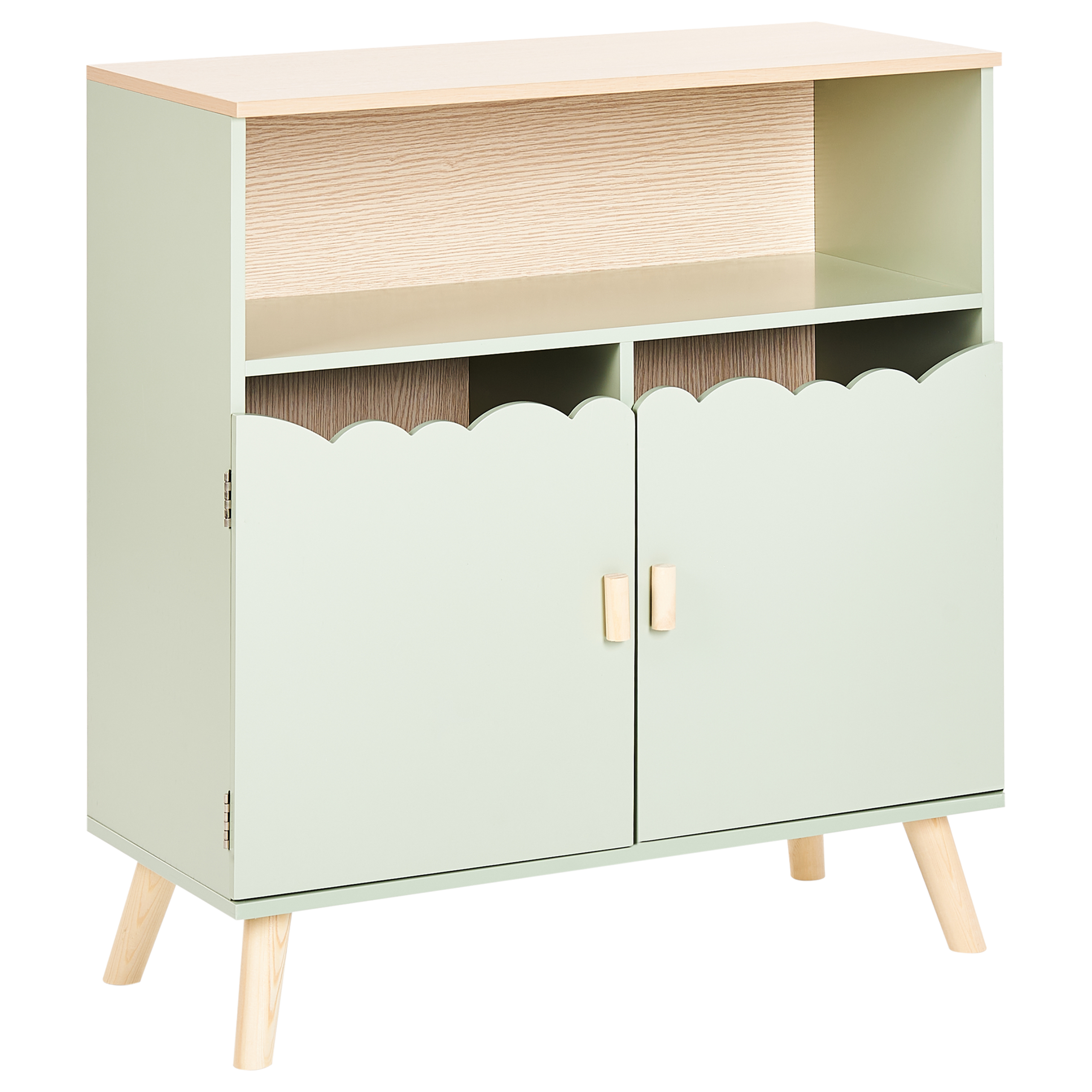 Viehättävä talonmuotoinen lasten senkki. Tämä hurmaava talonmuotoinen senkki lisää leikkisää mutta tyylikästä ilmettä jokaiseen lastenhuoneeseen. Kestävä MDF-runko ja vankat mäntyjalat takaavat tukevuuden ja pitkäikäisyyden. Senkissä on kaksi sievästi aaltoilevaa ovea, joiden taakse kätkeytyvä hyllytila tarjoaa runsaasti säilytystilaa leluille, kun taas yläosan hylly ja taso sopivat kirjojen, koristeiden ja suosikkipehmolelujen esittelyyn. Sen monipuolinen muotoilu täydentää mitä tahansa sisustustyyliä, tuoden tilaan hauskan ja näyttävän säilytysratkaisun.