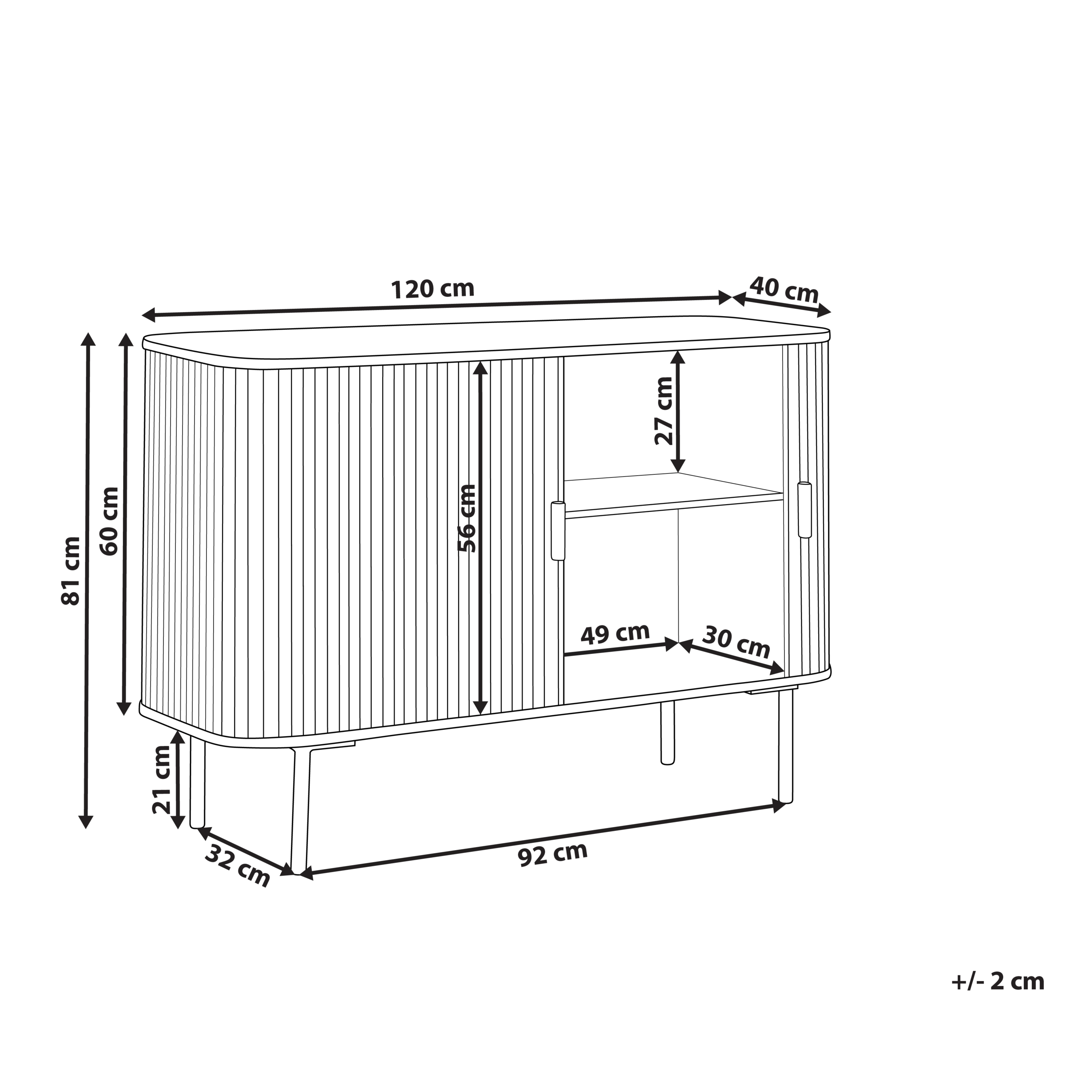 Matala lipasto kahdella liukuovella. Päivitä sisustuksesi ja kalusta se tällä elegantilla senkillä. Kestävät kaksi liukuovea on valmistettu keisaripuusta ja MDF-levystä. Klassinen mutta samalla nykyaikainen senkki ilmentää ajatonta eleganssia modernilla vivahteella. Tukevat rautajalat tekevät tästä kappaleesta täydellisen säilytysratkaisun tilaasi. Sen vankka rakenne takaa pitkäikäisyyden, kun taas ylläpito lupaa käyttömukavuutta päivittäiseen arkeen.