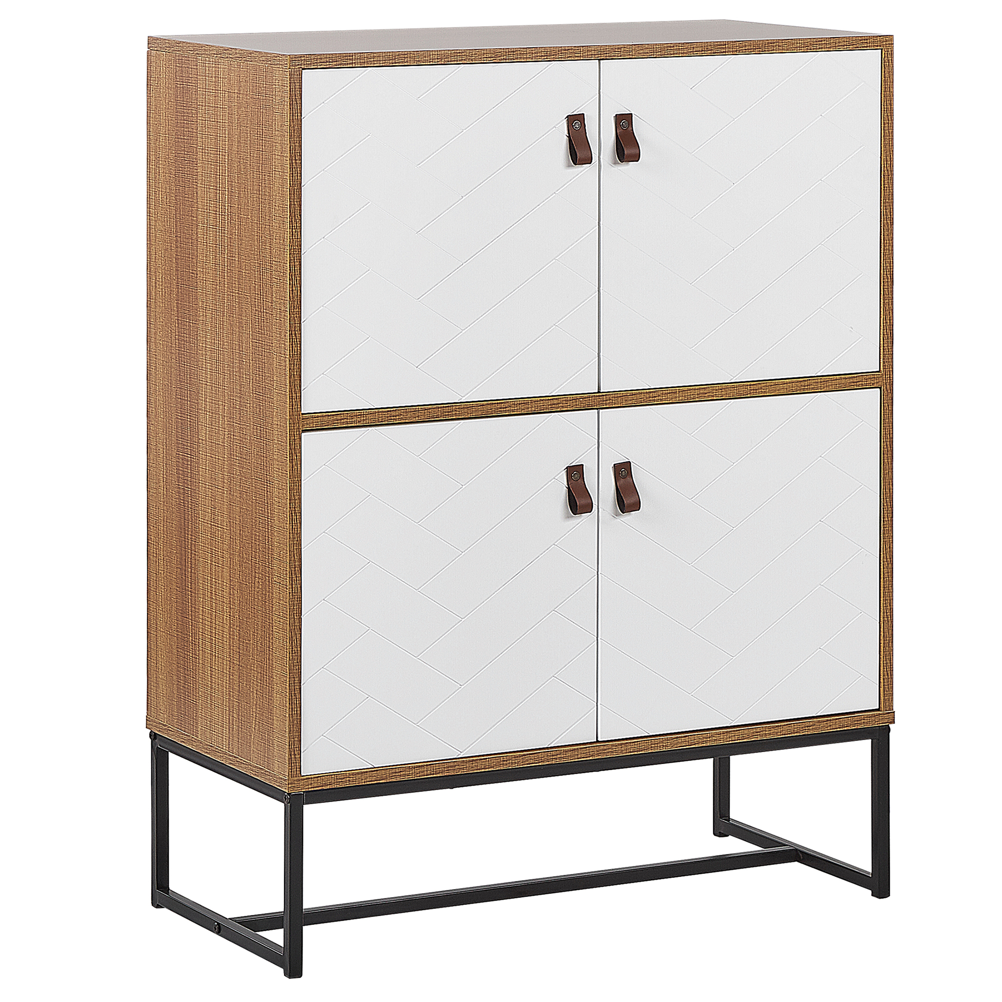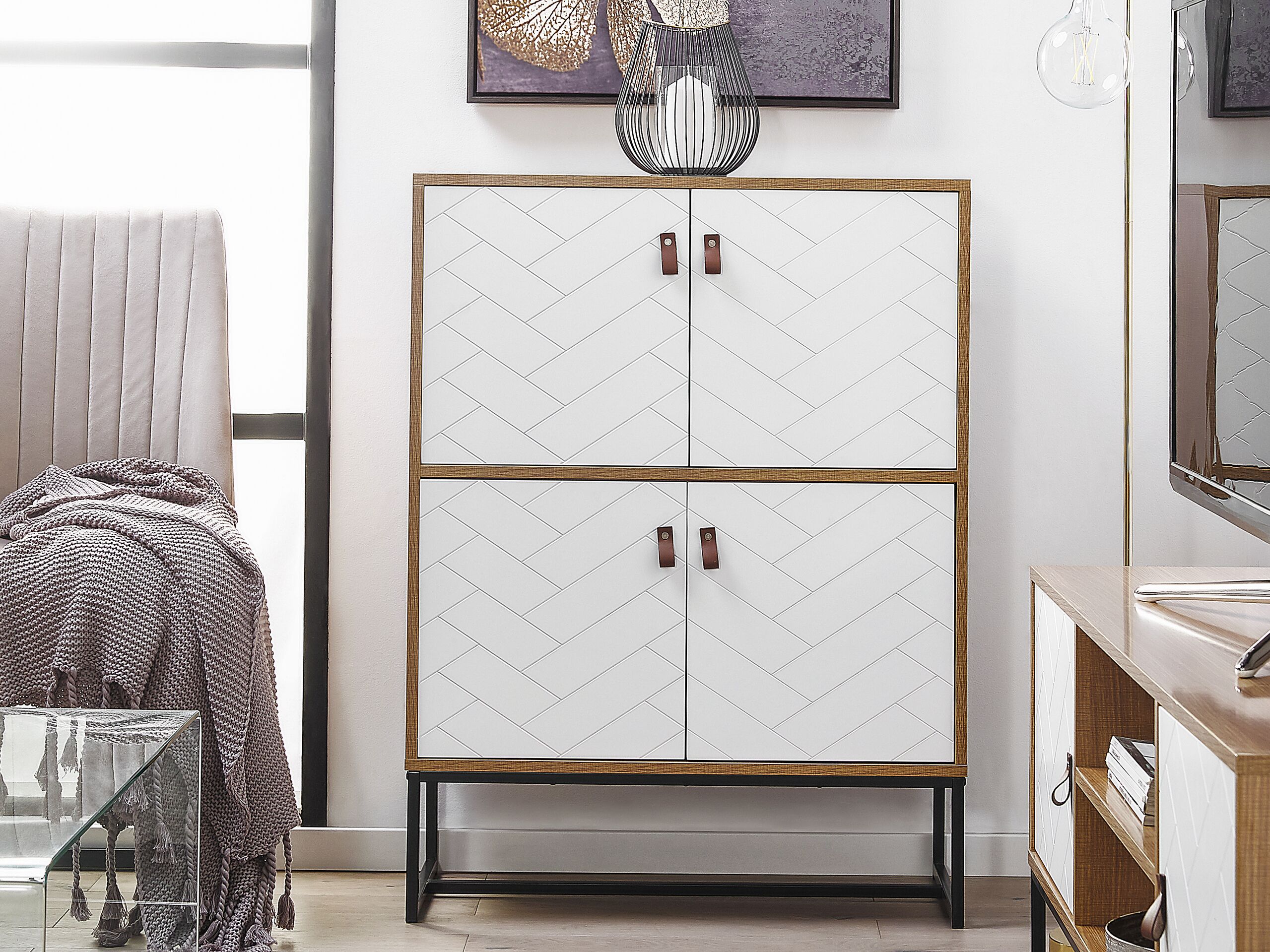 Moderni korkea kaappi. Tämä sivupöytä on loistava vaihtoehto, jos etsit perinteistä säilytysratkaisua modernilla ilmeellä. Tuote on valmistettu kestävästä MDF-levystä ja tukevista metallisista jaloista. Pöydän kaksi erillistä osaa tarjoavat runsaasti säilytystilaa. Tyylikkäät yksityiskohdat, kuten keinonahkaiset vetimet, tekevät pöydästä hienostuneen.