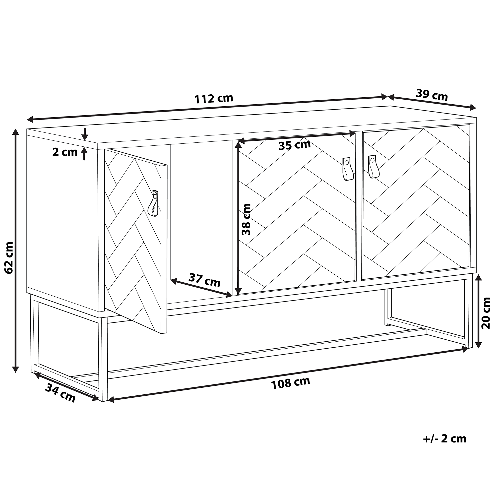 Moderni suorakulmainen kaappi. Tämä sivupöytä on loistava vaihtoehto, jos etsit perinteistä säilytysratkaisua modernilla ilmeellä. Tuote on valmistettu kestävästä MDF-levystä ja tukevista metallisista jaloista. Pöydän kolme erillistä osaa tarjoavat runsaasti säilytystilaa. Tyylikkäät yksityiskohdat, kuten keinonahkaiset vetimet, tekevät pöydästä hienostuneen.