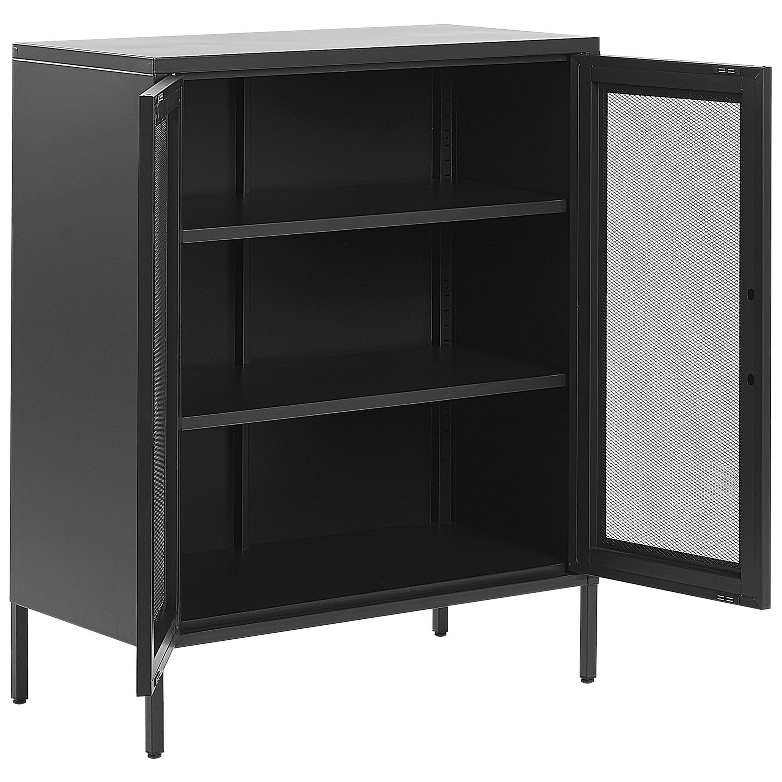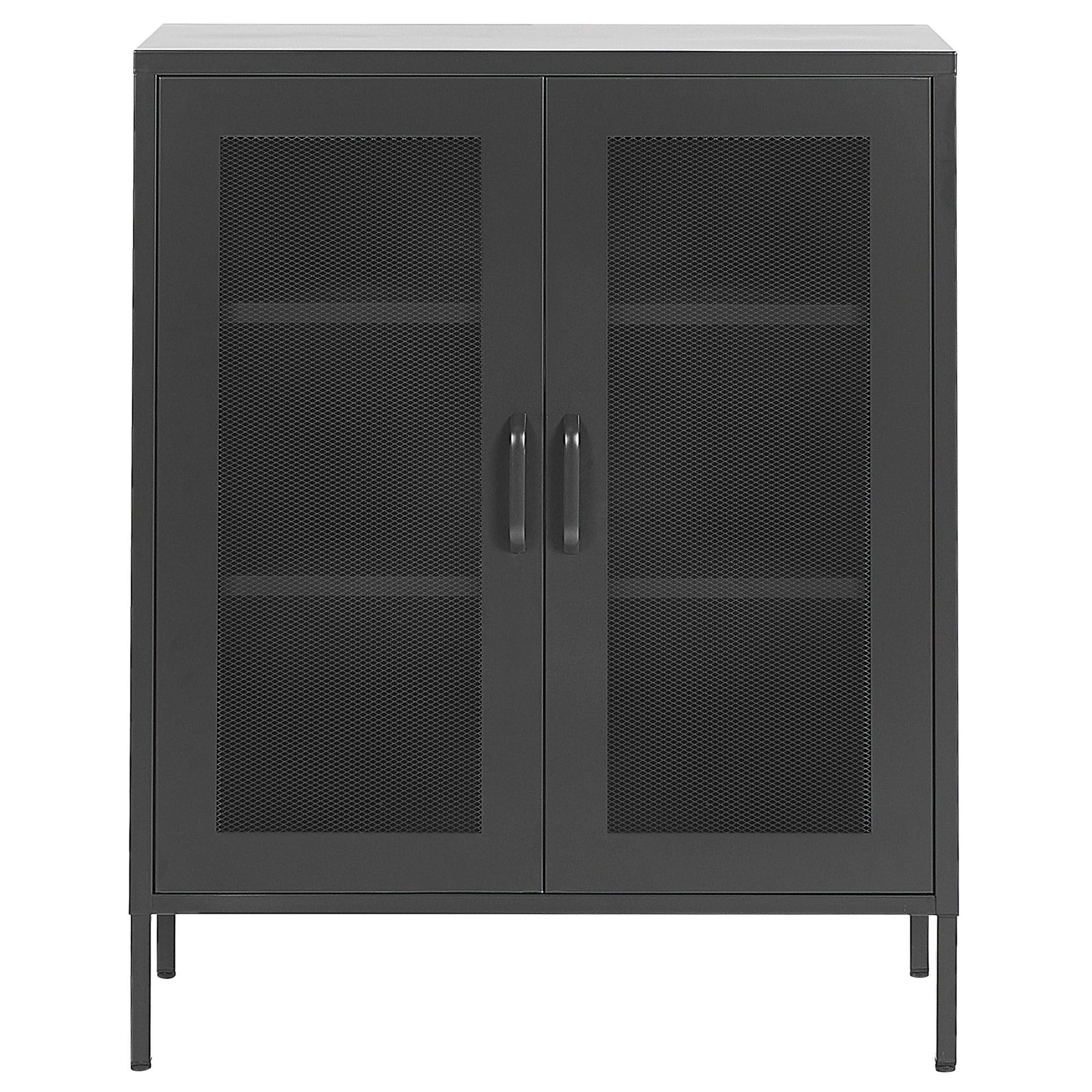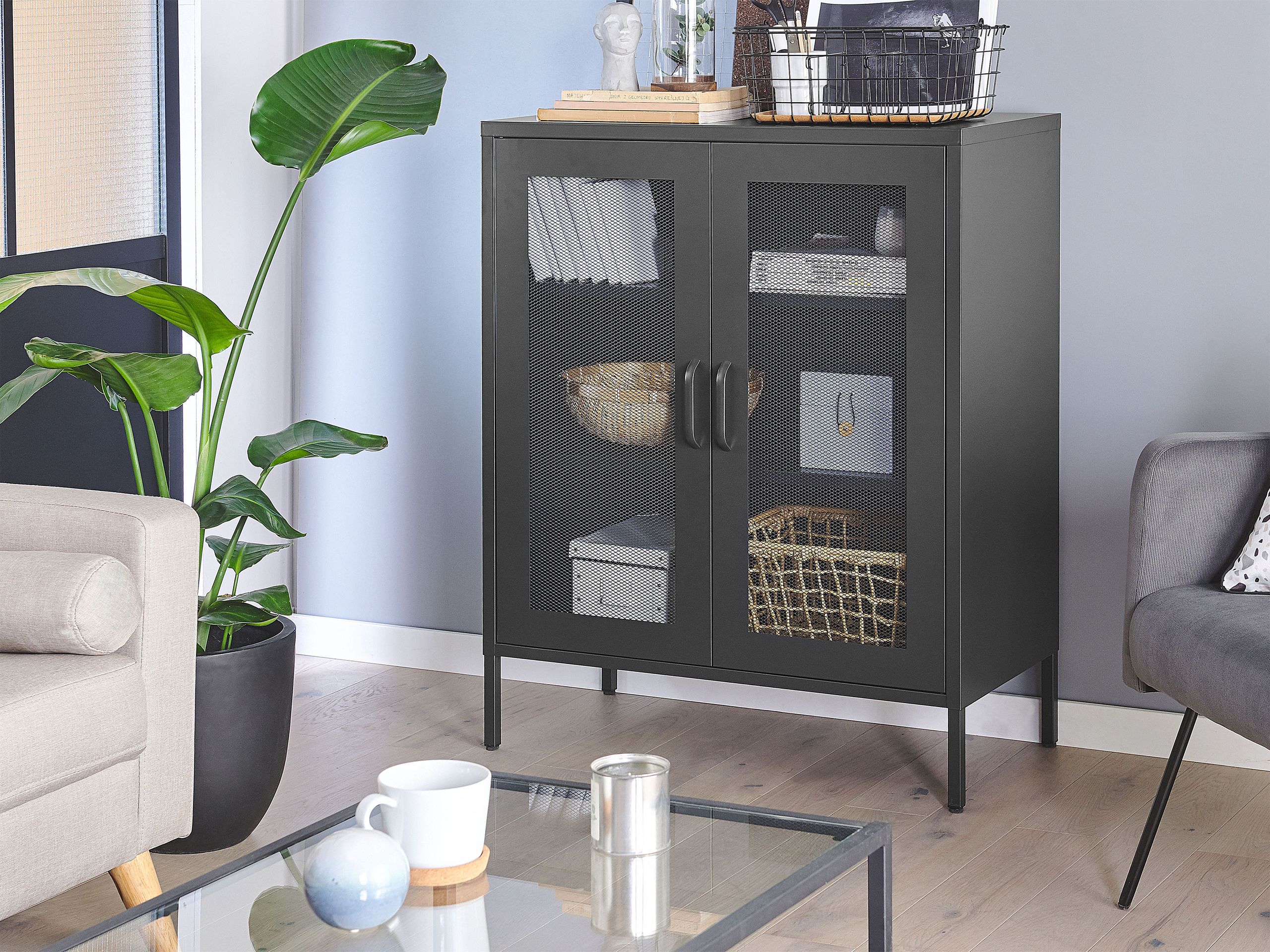 Industriaalinen kaappi verkko-ovilla. Lisää sisustukseen teollista tyyliä tällä senkillä. Teräksestä valmistettu senkki on helppohoitoinen, kestävä ja pitkäikäinen. Kolme tilavaa hyllyä tarjoavat runsaasti säilytystilaa tarpeellisille tavaroille sekä matkamuistojen ja muiden koriste-esineiden esittelyyn. Jaloissa sijaitsevat muoviset tapit suojaavat lattiaa naarmuilta. Mustan värin ansiosta senkki sopii moniin eri sisustustyyleihin.